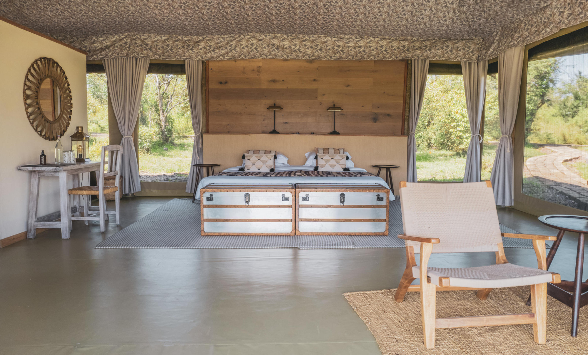 Entim meint "Wald" in Maasai und bedeutet, dass das Camp diskret in einem Wäldchen versteckt liegt. Die 12 Zelte sind Geschmackvoll eingerichtet. Von der Veranda einiger Zelte hat man einen guten Ausblick auf den Mara Fluss und kann so aus der Ferne zur Zeit der Gnuwanderung die großen Herden beobachten.