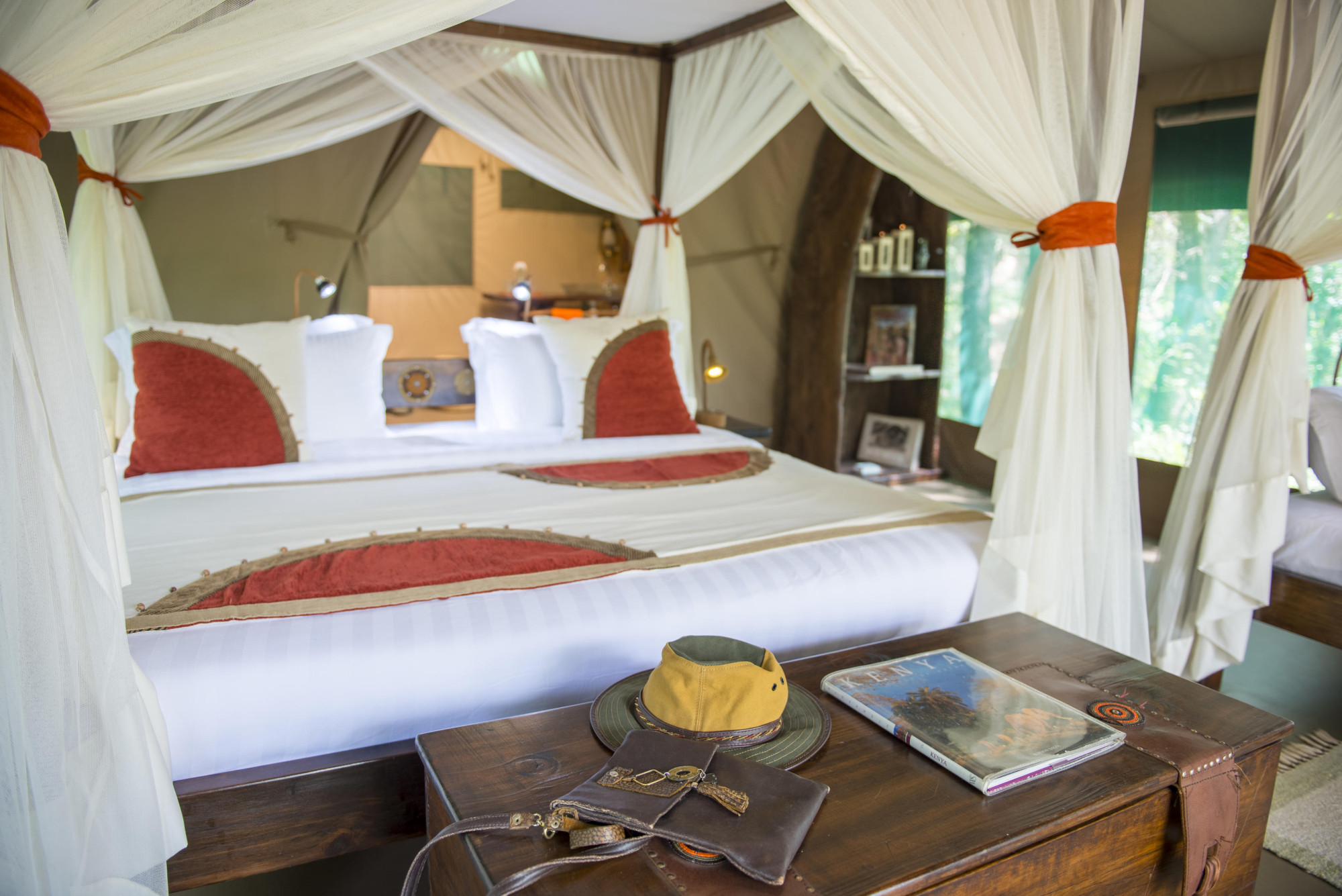 Alle Zelte sind mit großen Betten mit einem Moskitonetz, einer Garderobe, Teppiche sowie einem Schreibtisch ausgestattet. Dusche und Toilette sowie ein Handwaschbecken befinden sich abgetrennt ebenfalls in Ihrem Zelt. Eine Sitzgelegenheit und Sonnenstühle sind vor dem Zelt aufgebaut, um den Tag ruhig und bequem auch außerhalb des Zeltes ausklingen lassen zu können.