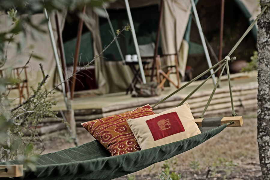 Das Camp verfügt über nur 6 Gästezelte und ist weit abseits von den üblichen Touristenwegen im Schutzgebiet zu finden. Alle Zelte sind luxuriös ausgestattet und verfügen über Dusche und fließend Wasser sowie auch Spültoiletten. Die um ein Wasserloch angelegten Zelten ermöglichen auch eine Tierbeobachtung von der Veranda des Gästezeltes aus. Eine Restaurantzelt und eine Lounge stehen für einen unbeschwerten und umsorgten Aufenthalt zur Verfügung.