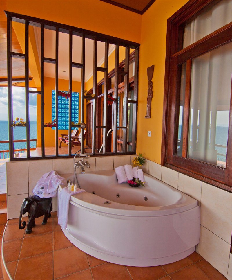 Alle Zimmer verfügen über ein eigenes Bad mit Dusche, Moskitonetze, Klimaanlage, Safe, Minibar/Kühlschrank sowie Tee- und Kaffeezubereitungsmöglichkeiten. Die ruhige Lage und die erhöhte Position des Hotels sorgen für erholsame Nächte.