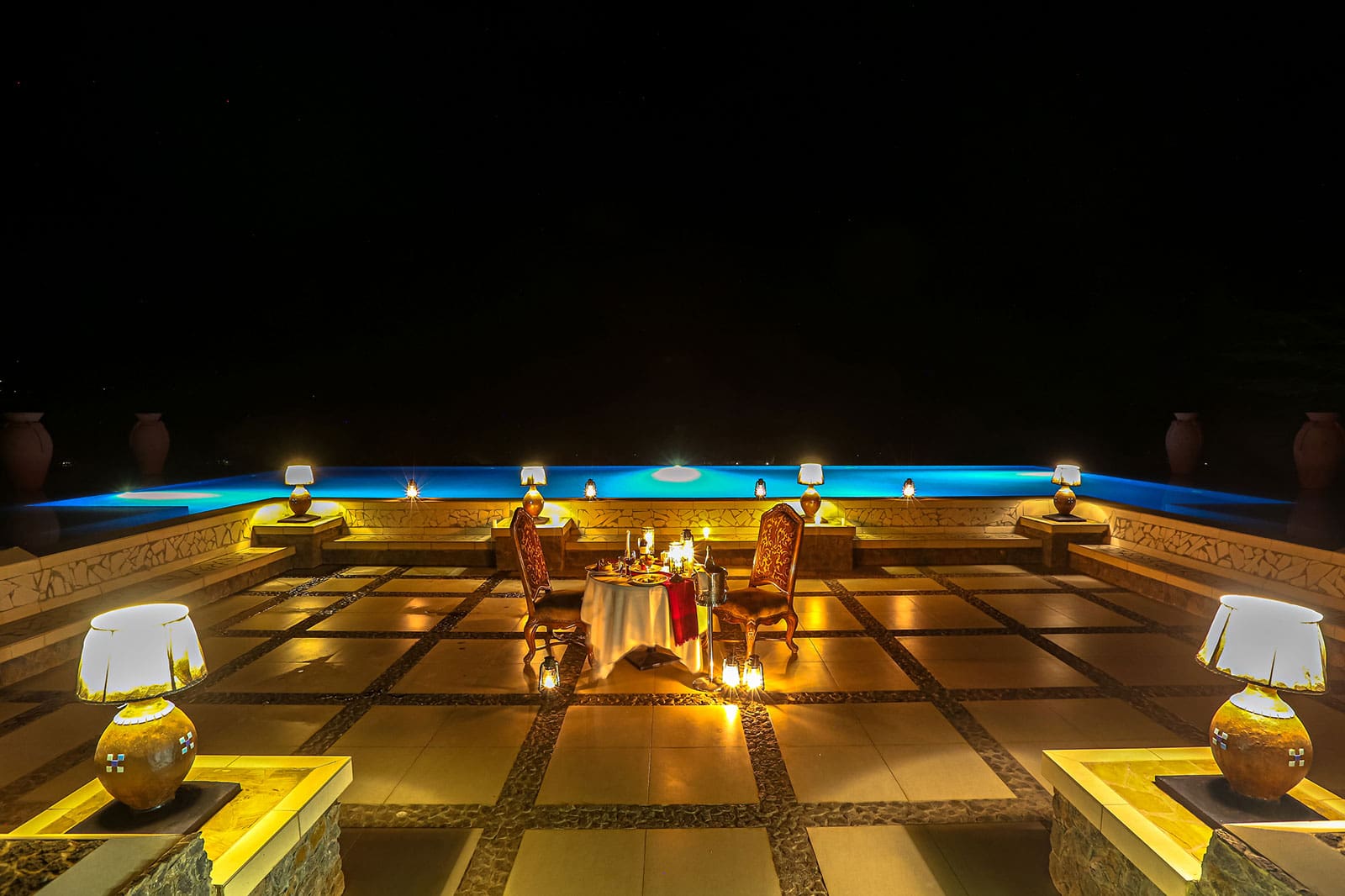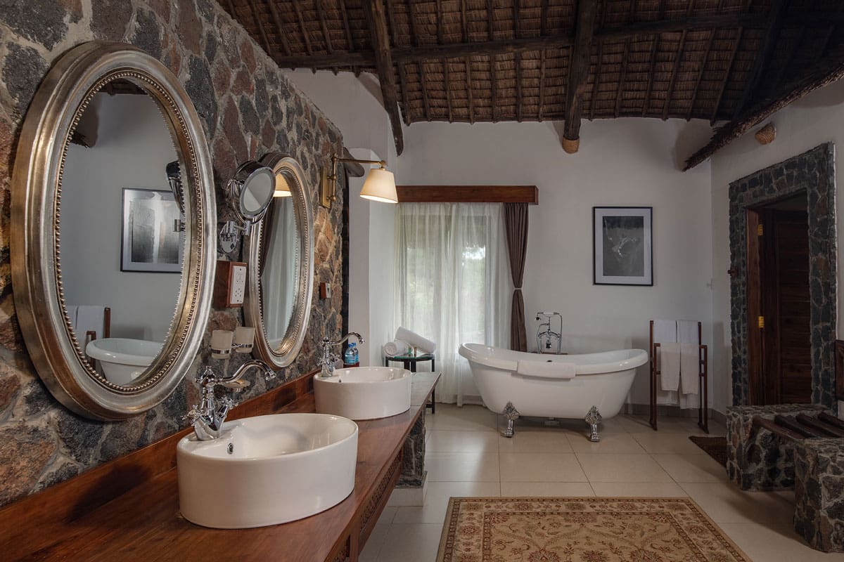 Im eleganten Hauptgebäude laden der stilvolle Speisesaal und die Bar dazu ein, exzellente Küche und erlesene Getränke zu genießen. Zur Entspannung nach spannenden Safaritagen stehen ein exklusiver Spa-Bereich, ein moderner Fitnessraum sowie ein hauseigenes Kino zur Verfügung. Der großzügige Rim-Flow-Infinity-Pool bietet eine traumhafte Kulisse zum Abschalten, während die Feuerstelle im Außenbereich am Abend für besondere Safari-Momente unter dem Sternenhimmel sorgt.