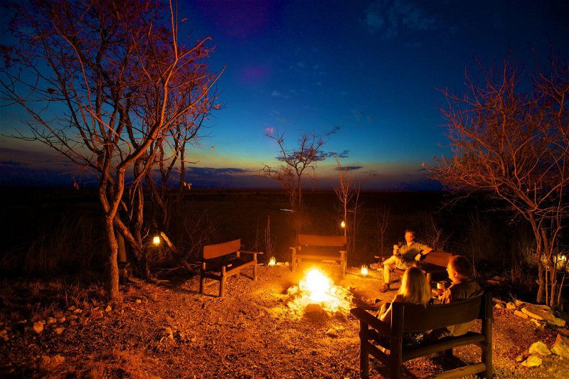 Die Lodge verfügt über 12 komfortable Safarizelte, die auf stabilen Holzplattformen rund um den Hügel errichtet sind. Diese Anordnung garantiert Privatsphäre und gleichzeitig herrliche Ausblicke in die Weite der Landschaft. Die Zelte sind zusätzlich mit traditionellen Dächern aus Palmwedeln und Stroh versehen, die für natürlichen Schatten sorgen. Großzügige Veranden mit gemütlichen Sitzgelegenheiten laden dazu ein, die umliegende Tierwelt entspannt zu beobachten. Jedes Zelt verfügt über ein eigenes Badezimmer, in dem den Gästen dank Solarheizung warmes Wasser zur Verfügung steht.