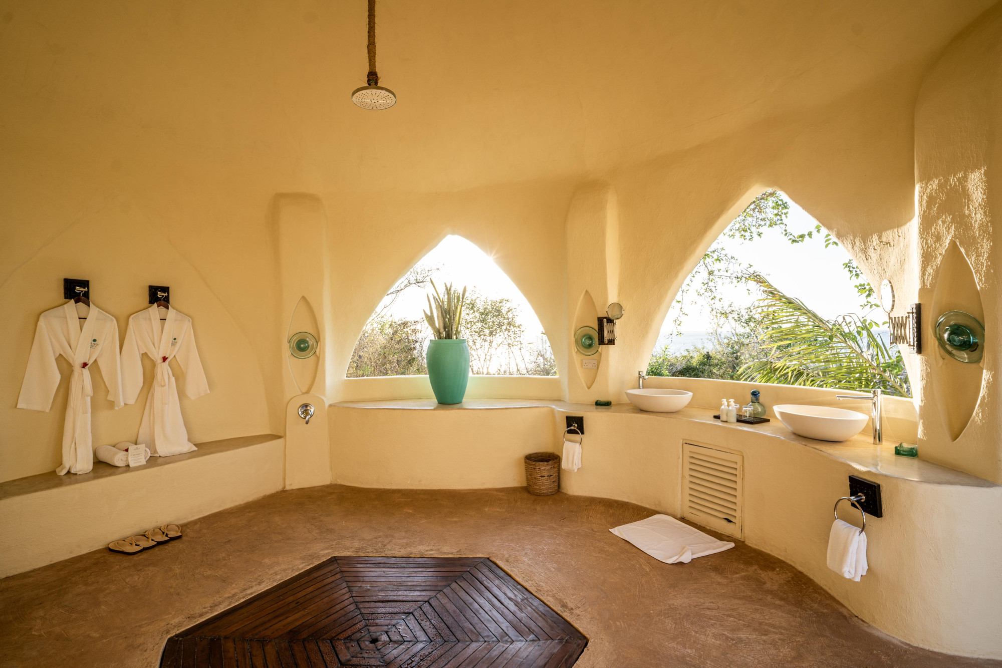 Die großzügigen Pavillons sind in mehrere Wohnbereiche unterteilt und bieten ein einzigartiges Gefühl von Offenheit und Privatsphäre. Jeder Pavillon verfügt über einen privaten Plunge-Pool, eine eigene Veranda, ein Sonnendeck sowie eine gemütliche Braza-Lounge zum Entspannen. Die teilweise offen gestalteten Badezimmer sind mit Dusche und WC ausgestattet und fügen sich harmonisch in das tropische Ambiente ein. Zusätzlich stehen eine Minibar mit Erfrischungsgetränken, ein Safe für Wertsachen sowie viel Raum zum Wohlfühlen zur Verfügung – ideal für erholsame Tage in exklusiver Umgebung.