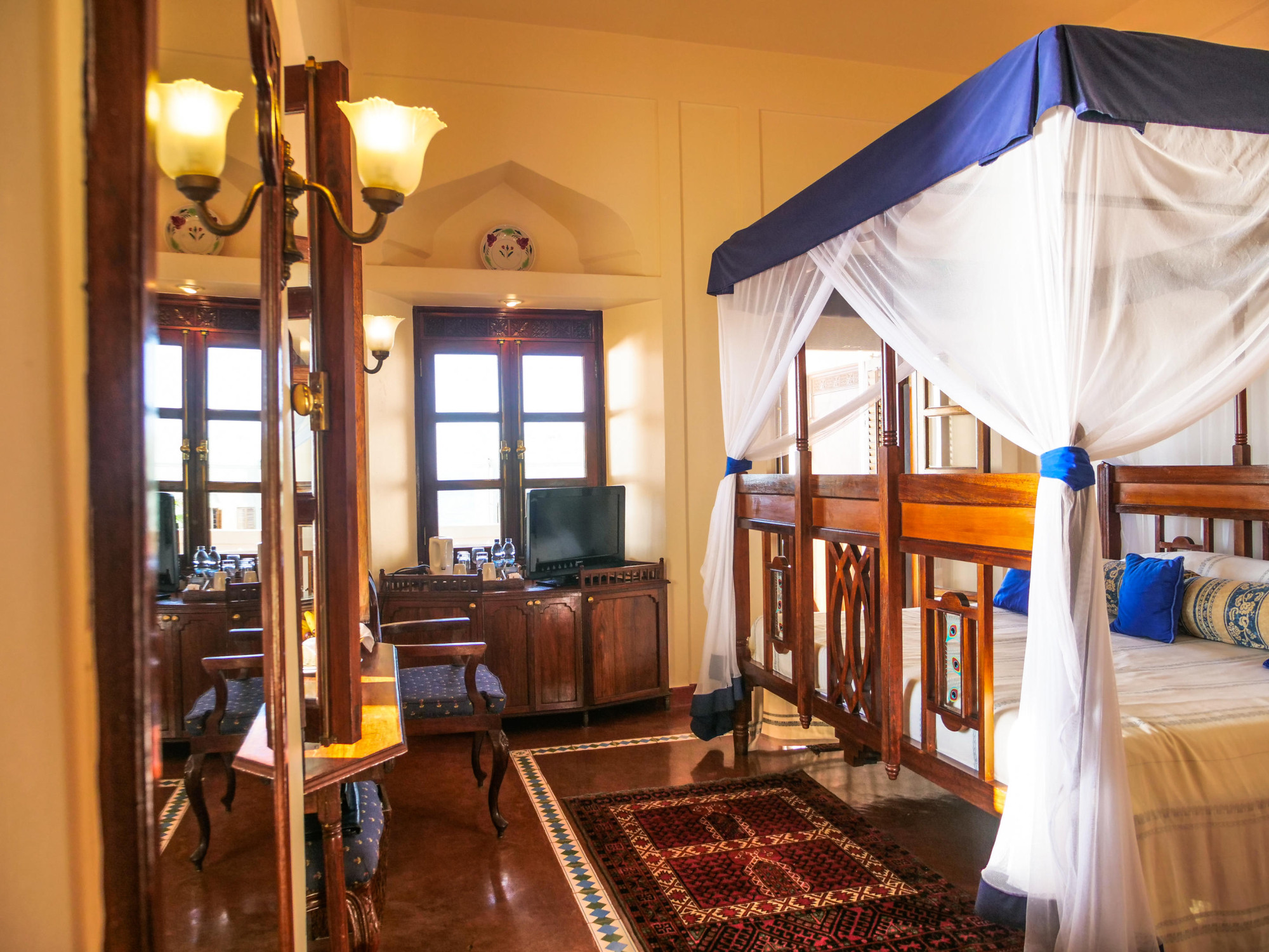 Die Zimmer des Zanzibar Serena Inn sind im traditionellen arabisch-swahilischen Stil gestaltet und strahlen Eleganz sowie historischen Charme aus. Warme Farben, stilvolle Details und eine ruhige Atmosphäre sorgen für erholsame Nächte inmitten der Altstadt von Stone Town. Alle Zimmer verfügen über Bad oder Dusche/WC, Klimaanlage, TV, Telefon, Safe, Moskitonetze, Minibar sowie Haartrockner. Viele Zimmer bieten zudem einen Balkon oder eine Terrasse mit Blick auf den Indischen Ozean oder die historische Umgebung.