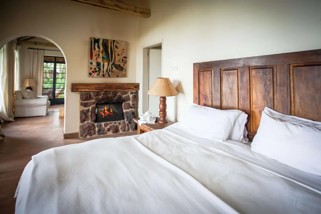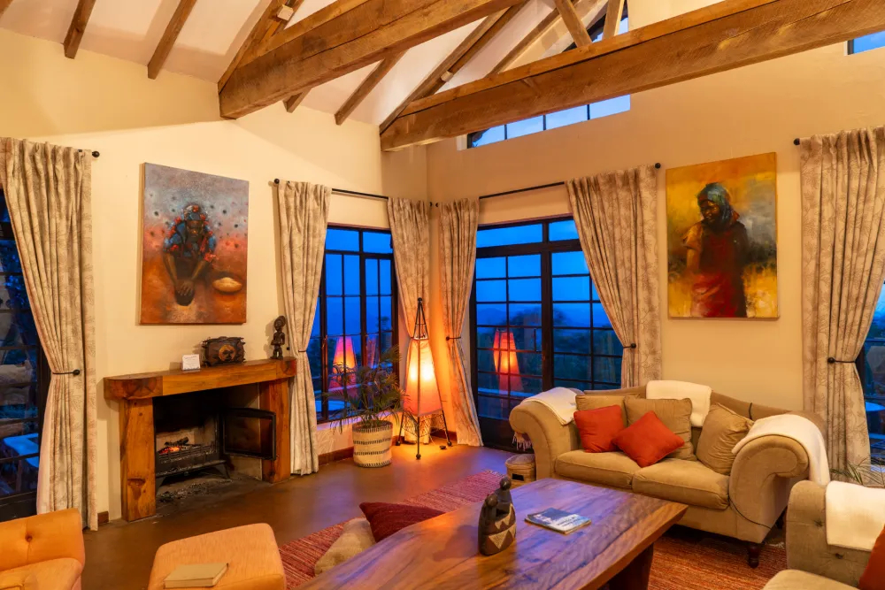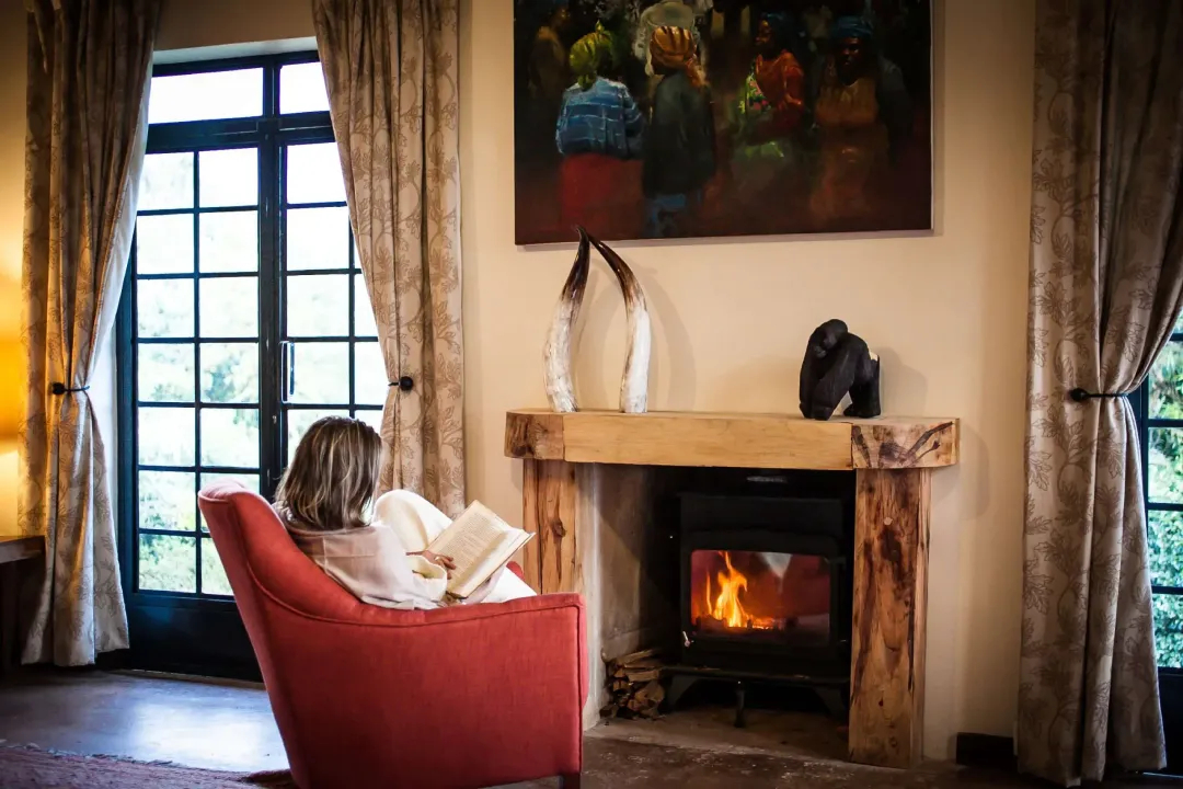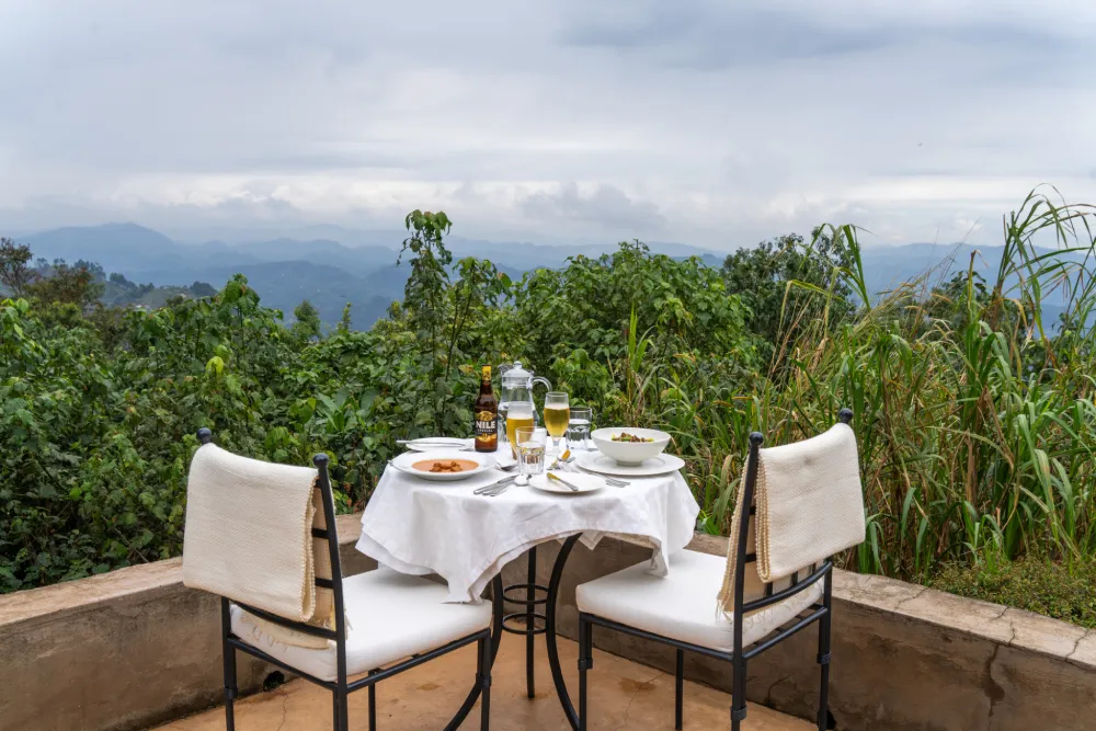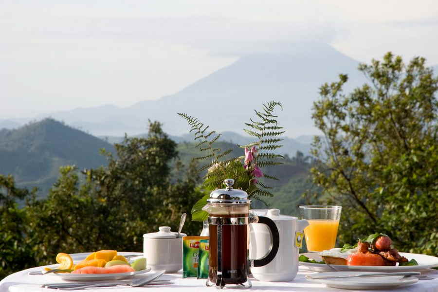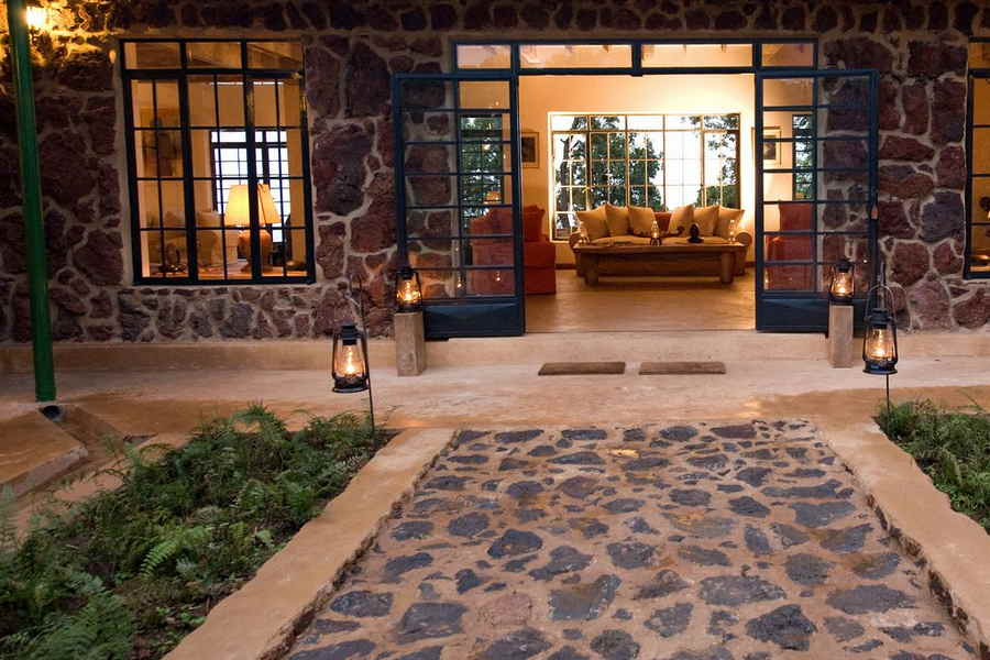 Im Hauptgebäude sorgen sechs offene Kamine für eine warme, gemütliche Atmosphäre – perfekt zum Entspannen nach einem anstrengenden Gorilla-Trekking. Gästen stehen ein Restaurant, eine Bar, eine Lounge, die Rezeption sowie ein kleiner Souvenir- und Geschenkeshop zur Verfügung. Die großzügige Terrasse eröffnet beeindruckende Panoramablicke bis zum Nyiragongo-Krater.