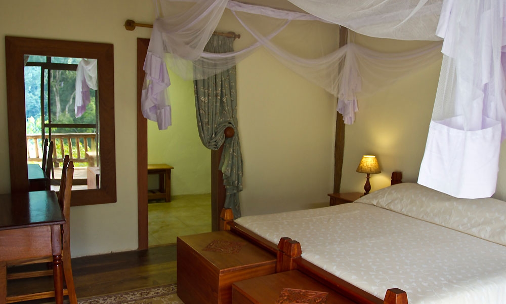 Die Engagi Lodge verfügt über 8 freistehende en-suite Cottages, die großzügig im Wald verteilt und von dichter Vegetation umgeben sind. Die Cottages sind wahlweise mit Doppel- oder Twin-Betten ausgestattet und bieten ein privates Badezimmer mit Dusche, Toilette sowie Warm- und Kaltwasser. Moskitonetze gehören zur Standardausstattung. Jede Einheit verfügt über eine private Veranda, auf der Gäste morgens Tee oder Kaffee genießen und dabei den Blick über das Regenwalddach schweifen lassen können.