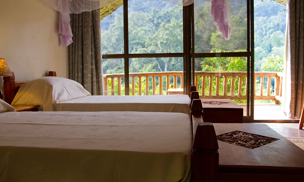 Die Engagi Lodge liegt inmitten eines großen, zusammenhängenden Waldgebietes direkt angrenzend an den Bwindi Impenetrable Forest Nationalpark und bietet beeindruckende Ausblicke über das dichte Blätterdach bis hinunter zum Munyanga River. Durch ihre Lage nahe der Straße zum Parkhauptquartier ist sie ein idealer Ausgangspunkt für Gorilla-Trekking im Buhoma-Sektor.