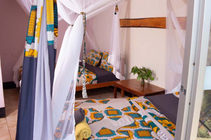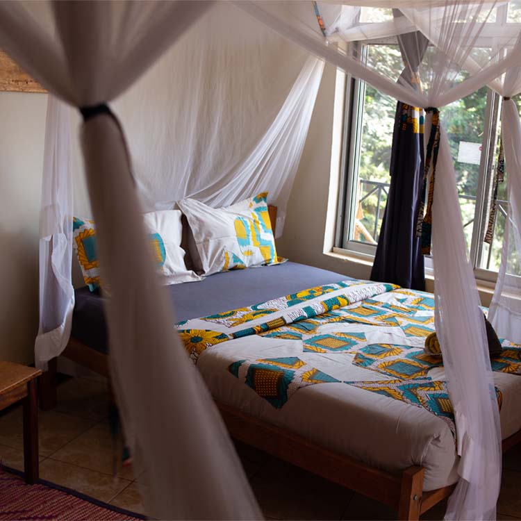 ViaVia Entebbe bietet eine breite Auswahl an Unterkünften für unterschiedliche Budgets und Reiseformen. Zur Verfügung stehen Zimmer im Hauptgebäude, Backyard-, Garden- und Pond-View-Rooms mit eigenem Bad, Terrasse oder Veranda sowie verschiedenen Belegungsmöglichkeiten von Einzel- bis Familienzimmern. Ergänzt wird das Angebot durch stilvolle Glamping-Zelte mit echten Betten, Strom, WLAN und gemeinschaftlichen Bambusduschen. Für preisbewusste Reisende gibt es zudem ein Dormitory mit Etagenbetten sowie einen Campingbereich mit mehreren Stellplätzen.