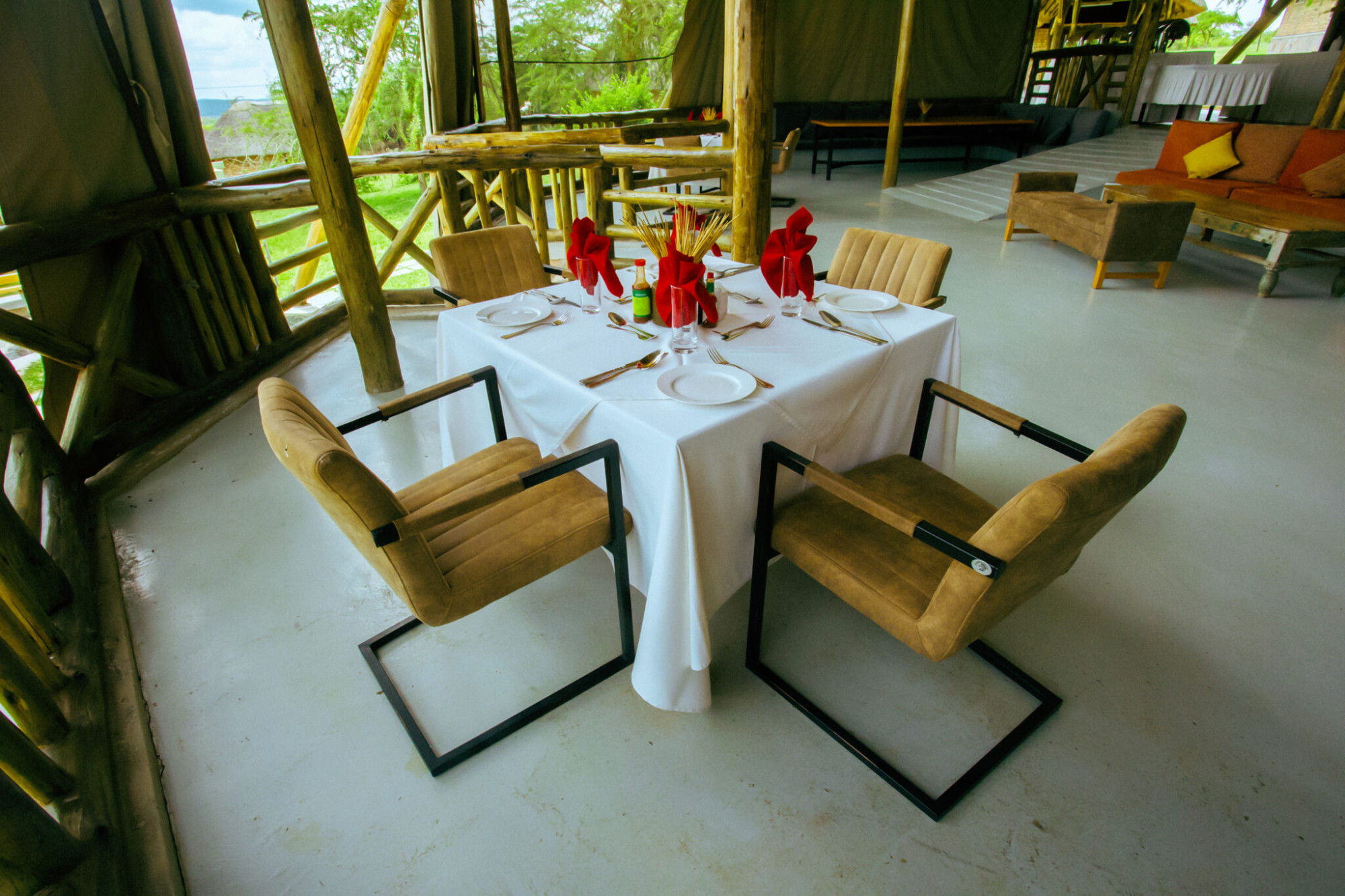 Herzstück der Lodge ist der offen gestaltete Hauptbereich mit Restaurant, Bar und Lounge, von dem sich ein weiter Blick über den See und die umliegende Landschaft eröffnet. Gäste können hier entspannen, regionale und internationale Küche genießen oder den Tag bei einem Sundowner ausklingen lassen. Ein Swimmingpool mit Seeblick lädt an warmen Tagen zum Abkühlen ein. WLAN steht in den öffentlichen Bereichen zur Verfügung, ebenso ein Wäscheservice.