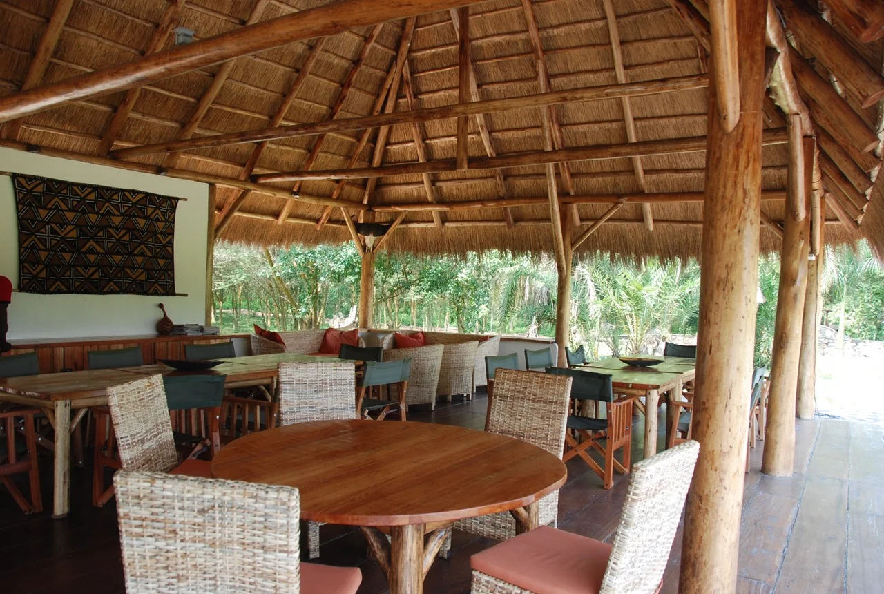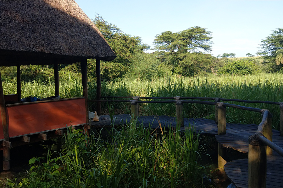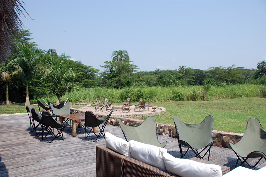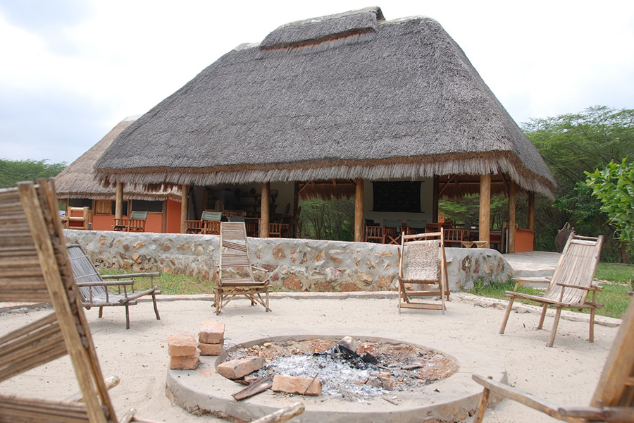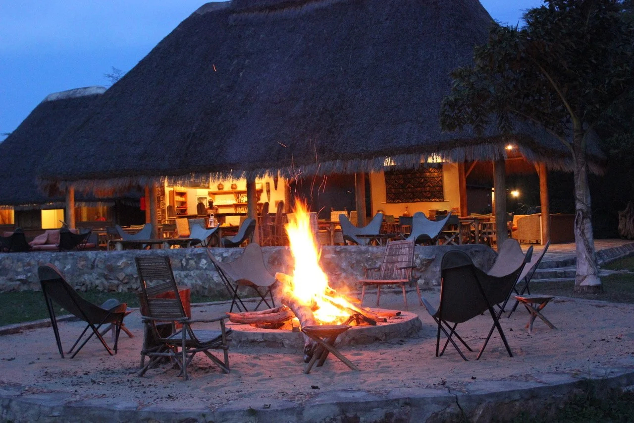 Das offen gestaltete Haupthaus bildet den Mittelpunkt der Lodge und bietet einen herrlichen Blick auf eine Wasserstelle, an der sich regelmäßig Vögel und Wildtiere beobachten lassen. Hier befinden sich der Speisebereich und die Lounge, in denen frisch zubereitete Mahlzeiten serviert werden. Am Abend lädt eine gemütliche Feuerstelle dazu ein, die Erlebnisse des Tages in geselliger Runde ausklingen zu lassen. Das weitläufige Gelände eignet sich hervorragend für kleine Spaziergänge, Naturbeobachtungen und entspannte Stunden in der afrikanischen Wildnis. Auf Wunsch können auch Dorf- und Schulbesuche in der näheren Umgebung organisiert werden, die Einblicke in das lokale Leben ermöglichen.