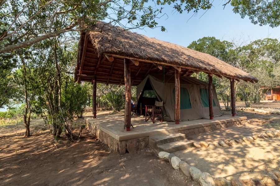 Diese zwei abgeschiedenen Safari-Zelte bieten mehr Privatsphäre und ein intensives Bush-Erlebnis. Sie verfügen ebenfalls über ein eigenes Badezimmer und eine Terrasse. Für Familien kann auf Wunsch ein zusätzliches Zelt auf der angrenzenden Plattform aufgestellt werden. Aufgrund der Lage wird diese Kategorie vor allem für Gäste mit eigenem Fahrzeug empfohlen.