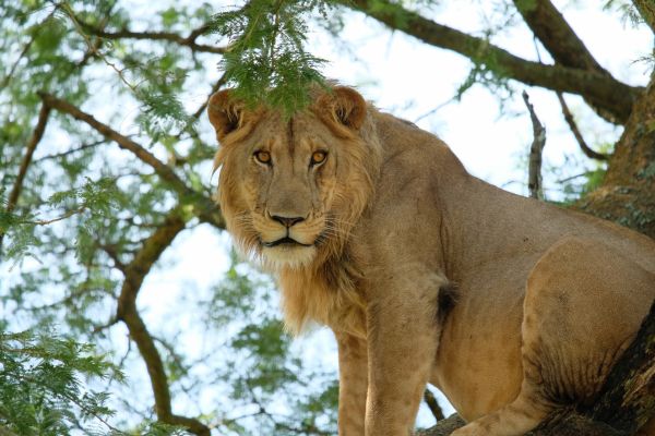 Ishasha ist vor allem bekannt für die auf Bäume kletternden Löwen. Gerade am Nachmittag, in den heißen Stunden, findet man die Löwen auf Bäumen, um den Schatten zu genießen und trotzdem einen Überblick über die Savanne zu haben.