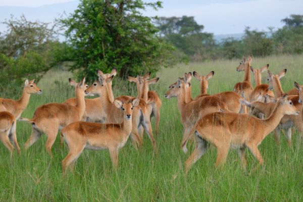 In großen Herden sind hier vor allem die Uganda Kobs (Grasantilopen) vorhanden.