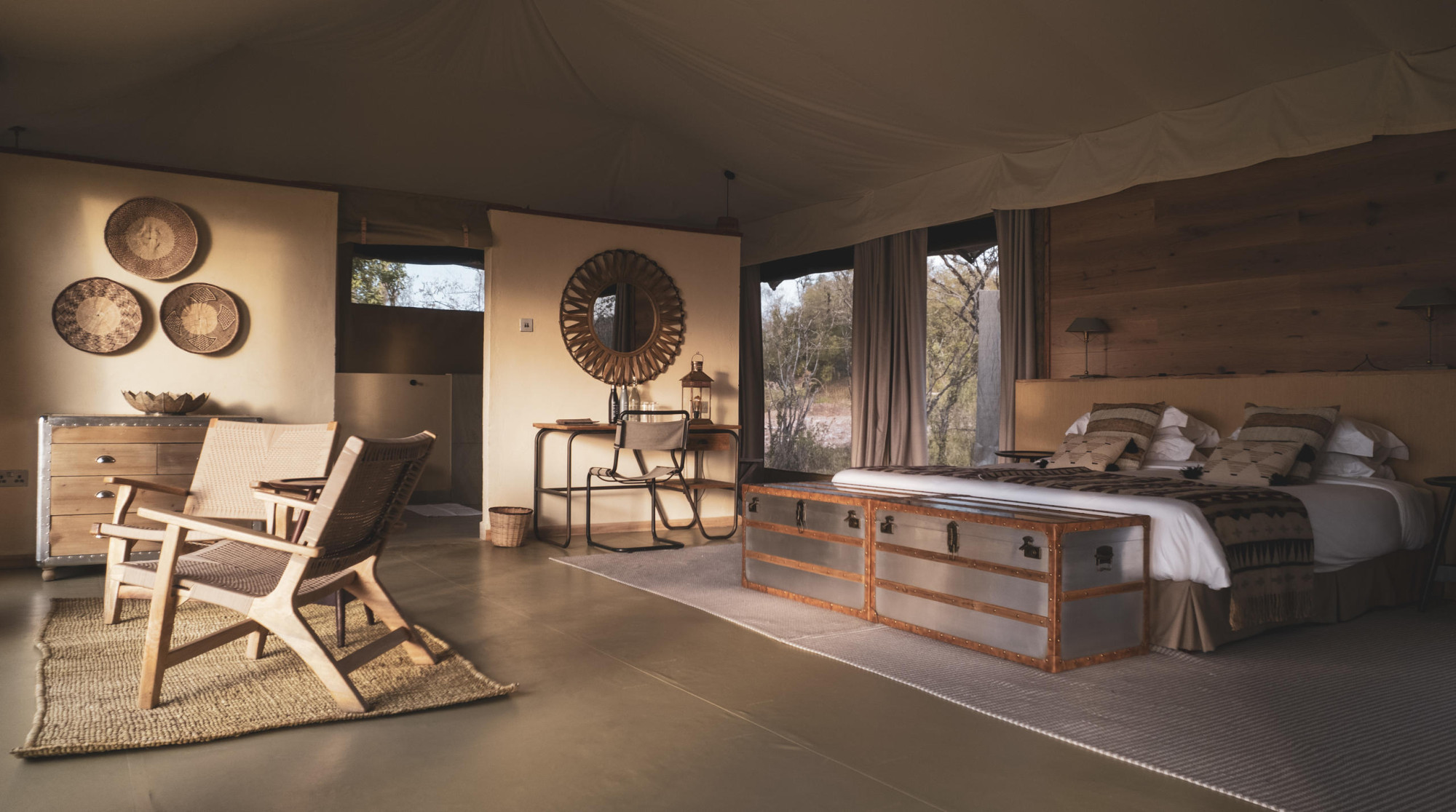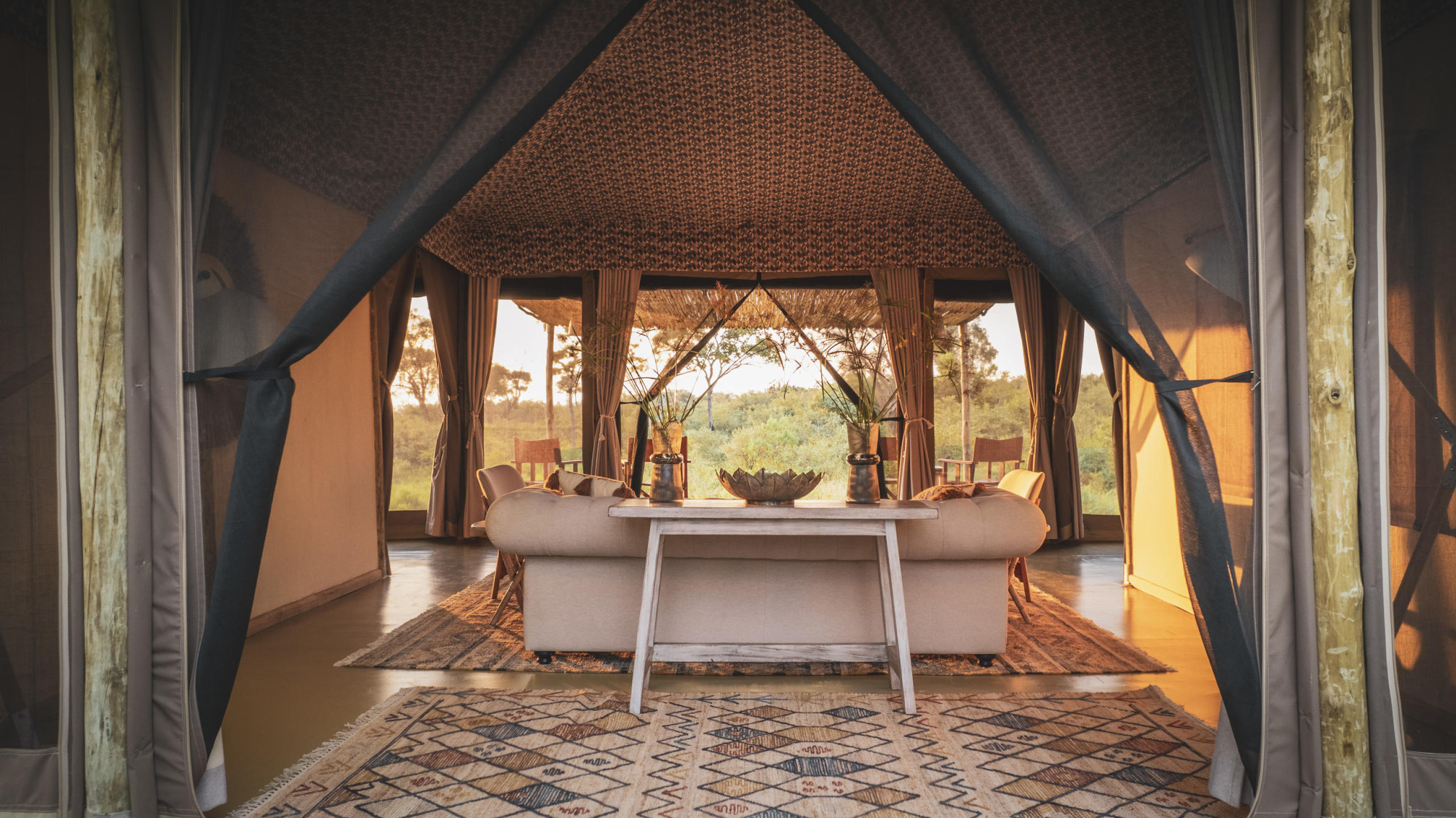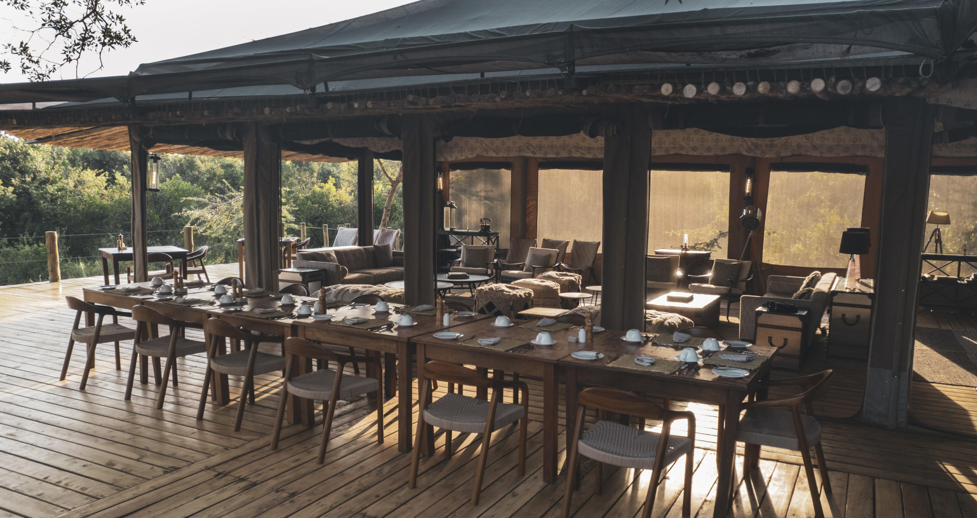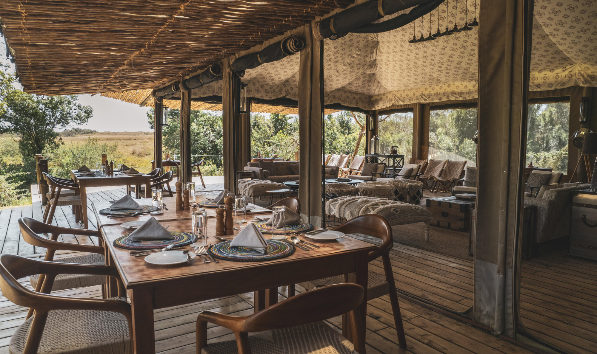 Ein Restaurant Zelt und ein Barzelt bilden die zentralen Einrichtungen im Camp.