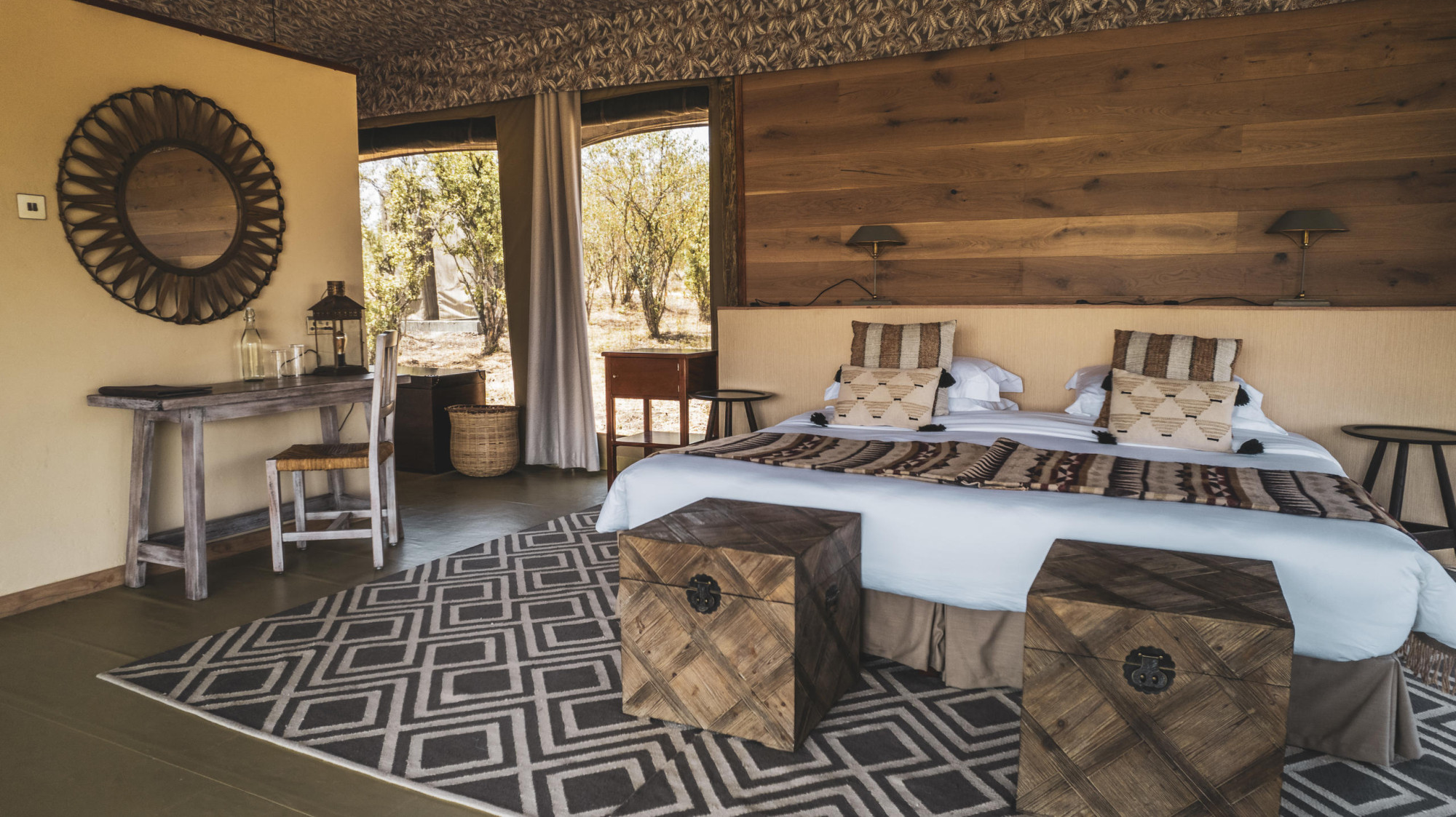 Entim meint "Wald" in Maasai und bedeutet, dass das Camp diskret in einem Wäldchen versteckt liegt. Die 12 Zelte sind Geschmackvoll eingerichtet. Von der Veranda einiger Zelte hat man einen guten Ausblick auf den Mara Fluss und kann so aus der Ferne zur Zeit der Gnuwanderung die großen Herden beobachten.