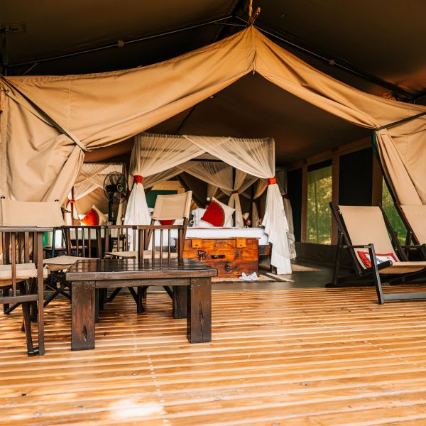 Das öko-freundliche Camp verfügt über 12 neue Gästezelte mit Doppel- oder Zwei- & Einzelbetten. Die Zelte sind einfach ausgestattet. Eine Solardusche und eine Toilette befinden sich ebenfalls im Camp. Zusätzlich können Wertgegenstände in einem Safe im Zelt gesichert werden. Die stilvollen Zelte im Ilkeliani Camp, idyllisch am Talek-Fluss im Herzen der Masai Mara gelegen, bieten modernen Safari-Komfort mit en-suite Bad, gemütlichen Betten, privater Veranda und Blick in die Wildnis.