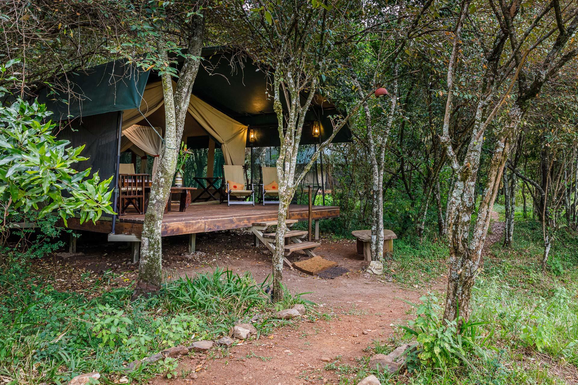 Alle Zelte sind mit großen Betten mit einem Moskitonetz, einer Garderobe, Teppiche sowie einem Schreibtisch ausgestattet. Dusche und Toilette sowie ein Handwaschbecken befinden sich abgetrennt ebenfalls in Ihrem Zelt. Eine Sitzgelegenheit und Sonnenstühle sind vor dem Zelt aufgebaut, um den Tag ruhig und bequem auch außerhalb des Zeltes ausklingen lassen zu können.