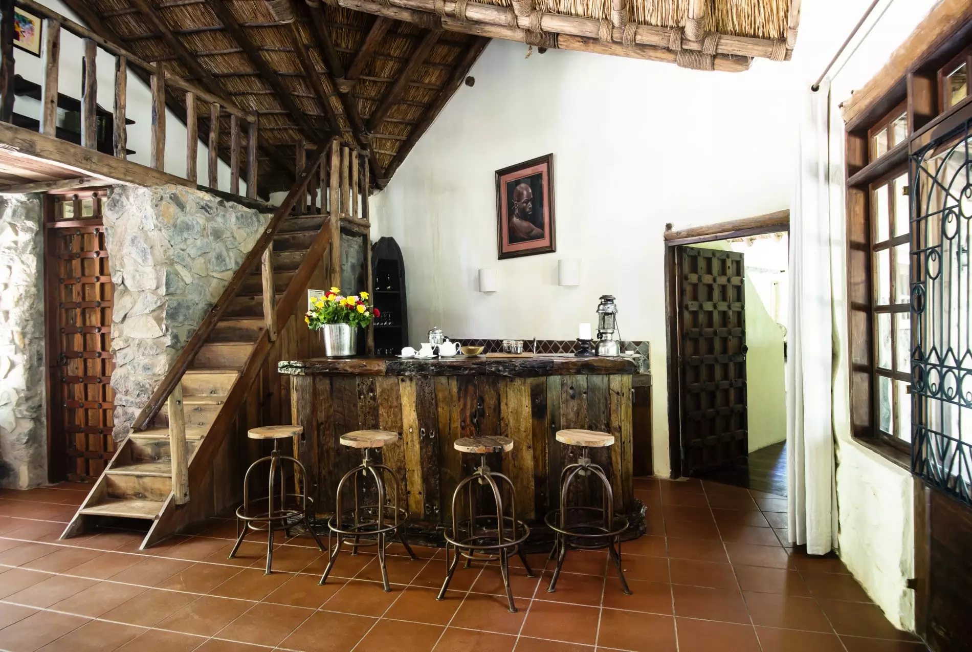 Das charmante Gästehaus verbindet ländliche Eleganz mit kolonialem Flair. In den Hauptgebäuden spürt man noch heute die Atmosphäre vergangener Zeiten – unterstrichen durch historische Fotografien, Möbel, Trophäen und liebevolle Dekorationen, die die tiefe Verbundenheit der Besitzerfamilie mit dieser Region widerspiegeln. Kulinarisch werden Gäste im gemütlichen Farmhaus-Restaurant und Pub verwöhnt, wo Gerichte der ländlichen Küche mit frischem Gemüse und Obst aus eigenem Anbau serviert werden.