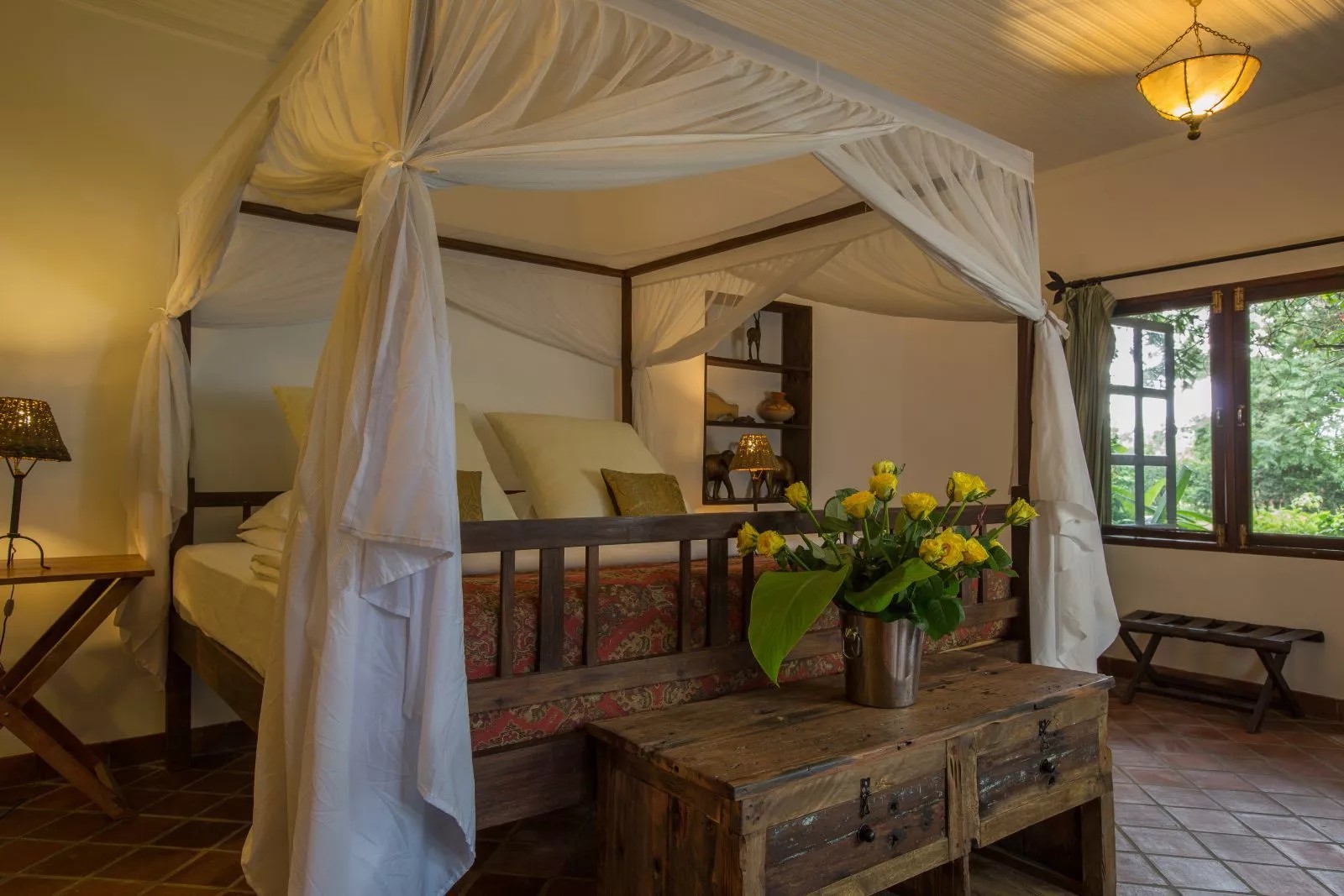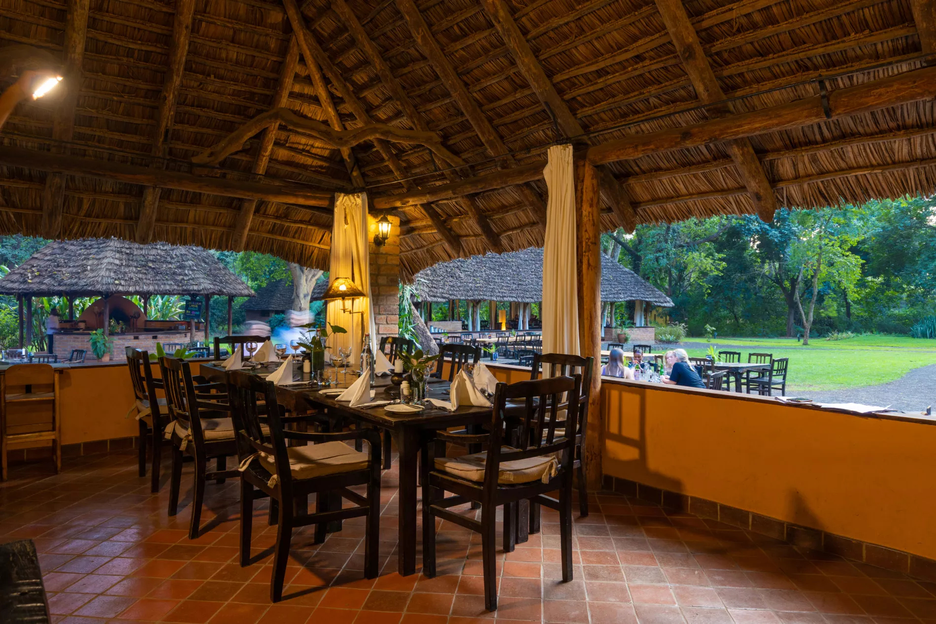 Der blütenreiche Garten und der von alten Bäumen gesäumte Fluss laden zu entspannten Spaziergängen ein. Ein Swimmingpool bietet Erfrischung an warmen Tagen und macht das Rivertrees Country Inn zu einem Ort der Ruhe und Erholung – perfekt, um nach der Anreise anzukommen oder eine Safari entspannt ausklingen zu lassen.