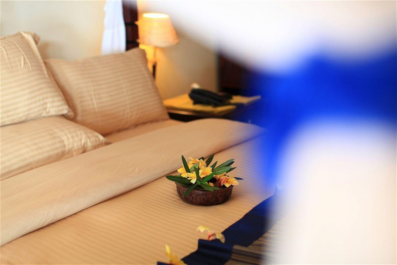 Alle Zimmer verfügen über ein eigenes Bad mit Dusche, Moskitonetze, Klimaanlage, Safe, Minibar/Kühlschrank sowie Tee- und Kaffeezubereitungsmöglichkeiten. Die ruhige Lage und die erhöhte Position des Hotels sorgen für erholsame Nächte.