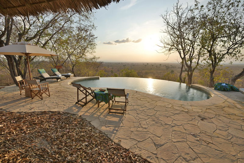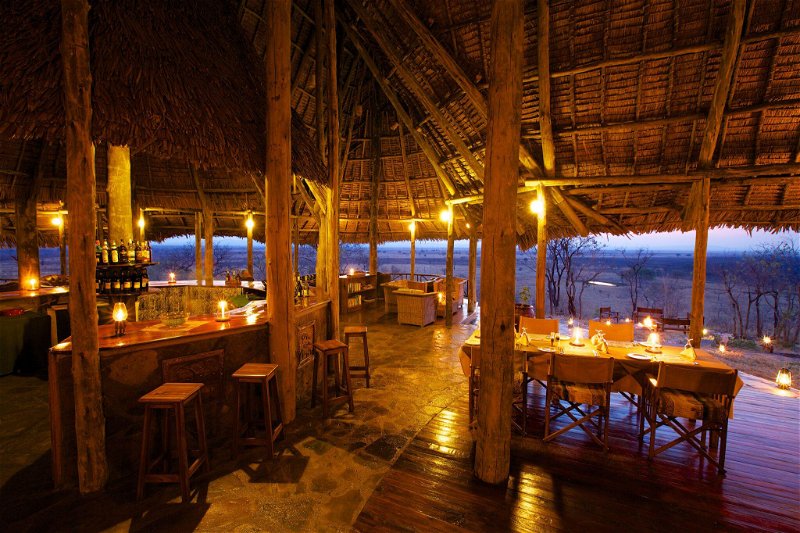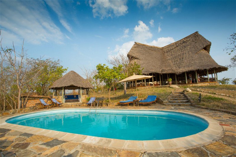 Das Hauptgebäude schmiegt sich direkt an den Hügel und bietet eine beeindruckende 360-Grad-Rundumsicht über die Mkata-Ebene. Ein Swimmingpool sorgt an heißen Tagen für erfrischende Abkühlung. Bar und Speisebereich schaffen eine angenehme Atmosphäre für gesellige Momente und den Austausch mit anderen Gästen. Eine nahegelegene Wasserstelle zieht regelmäßig Wildtiere an und ermöglicht spannende Beobachtungen auch abseits der Pirschfahrten.