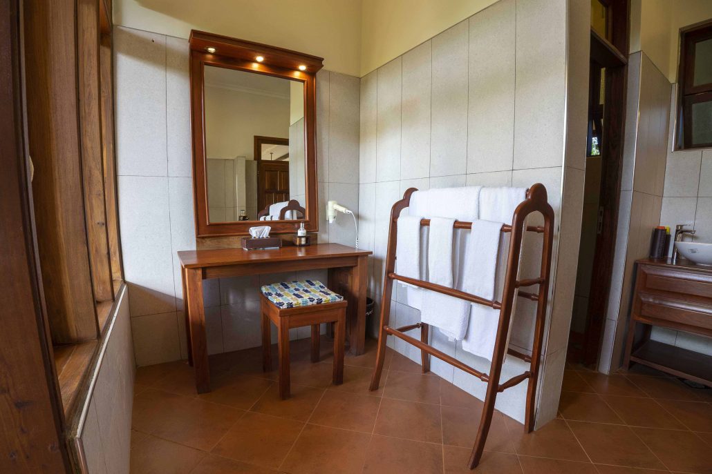Ein kleiner Geschenkeladen lädt zum Stöbern ein, während eine Aussichtsplattform im Hauptbereich einen herrlichen Blick über die Kaffeeplantage bietet. Zur Erntezeit können Gäste den Kaffeebauern bei ihrer Arbeit zusehen oder sogar selbst Hand anlegen – ein authentisches Erlebnis abseits klassischer Safarirouten.