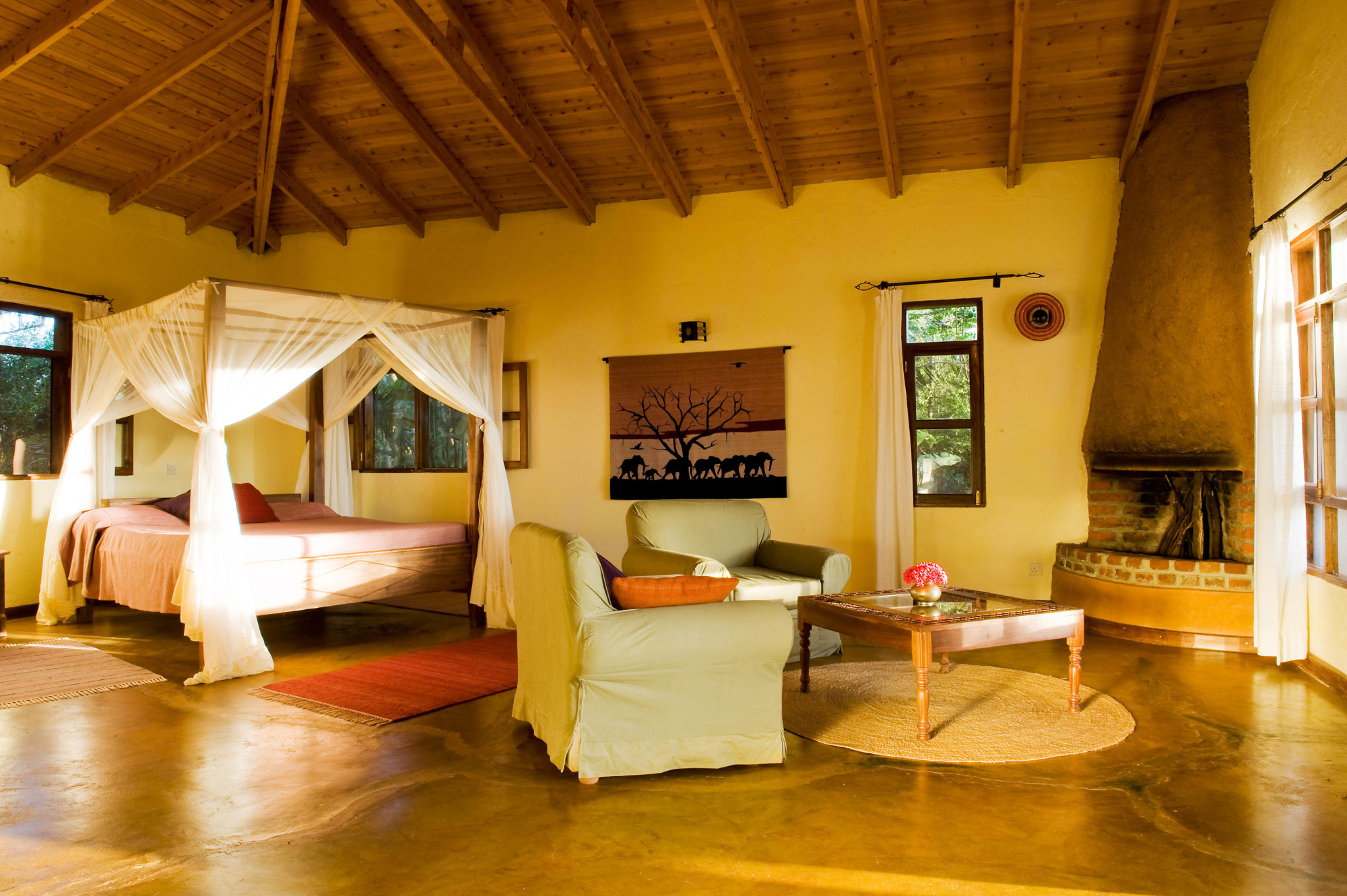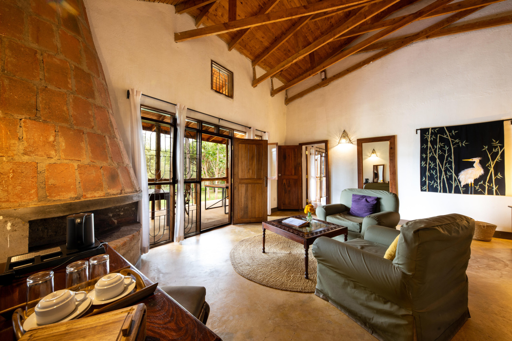 Die Architektur im alten kolonialen Stil fügt sich harmonisch in die Natur ein und schafft ein Gefühl von Ruhe und Ursprünglichkeit. Gäste können den täglichen Ablauf auf der Farm beobachten, durch die duftenden Gärten spazieren oder den Blick über die weite Landschaft schweifen lassen – besonders bei den spektakulären Sonnenuntergängen, die diese Region so einzigartig machen.