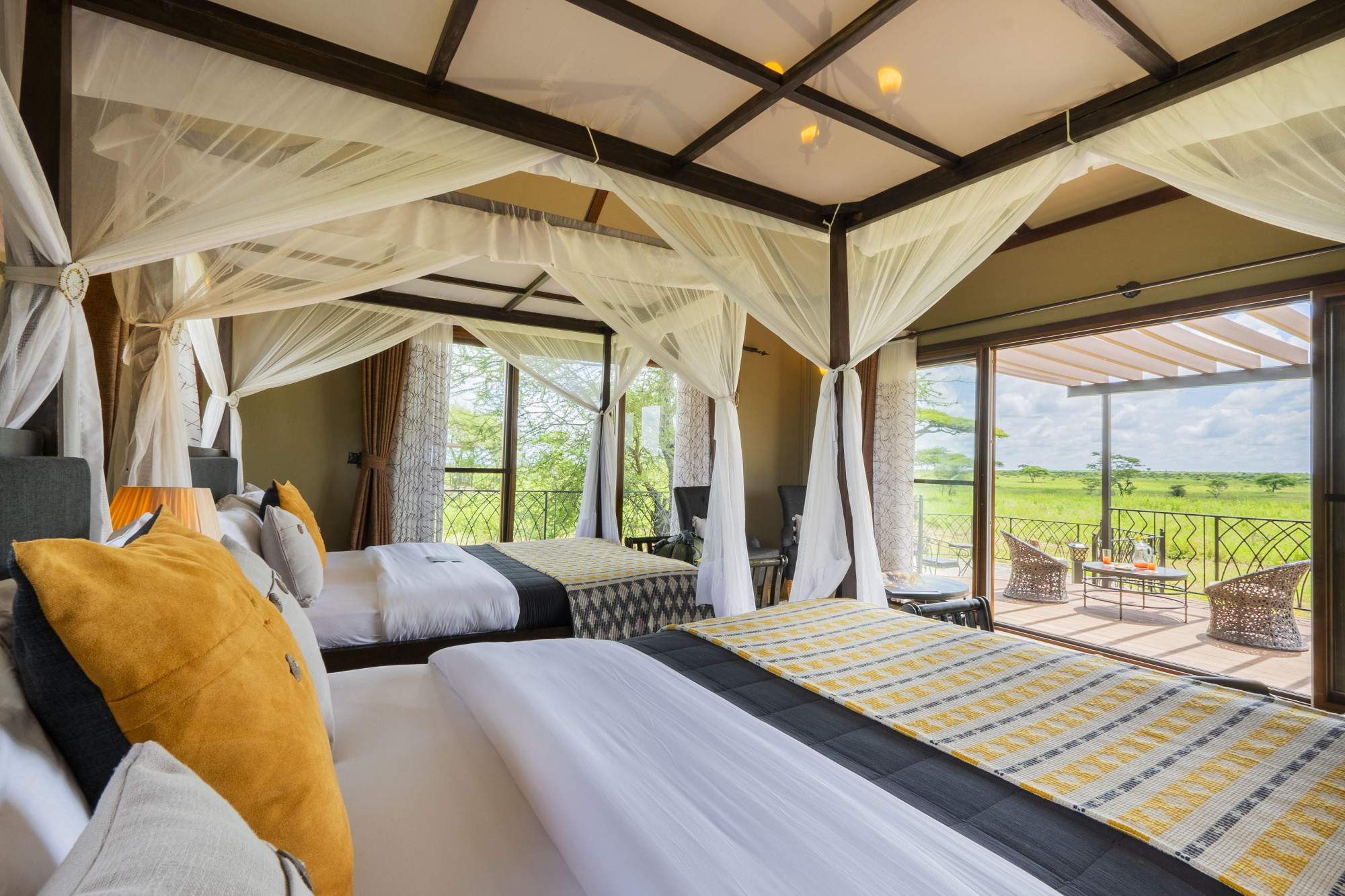 Das Camp besteht aus geräumigen Luxuszelten, Luxussuiten und Familiensuiten. Durch die dünnen Segeltuchwände kann man mit der Musik der wilden Serengeti vor der Tür schlafen und aufwachen. In der Lounge und im Essbereich können Sie den Service und die Safari-Atmosphäre genießen.