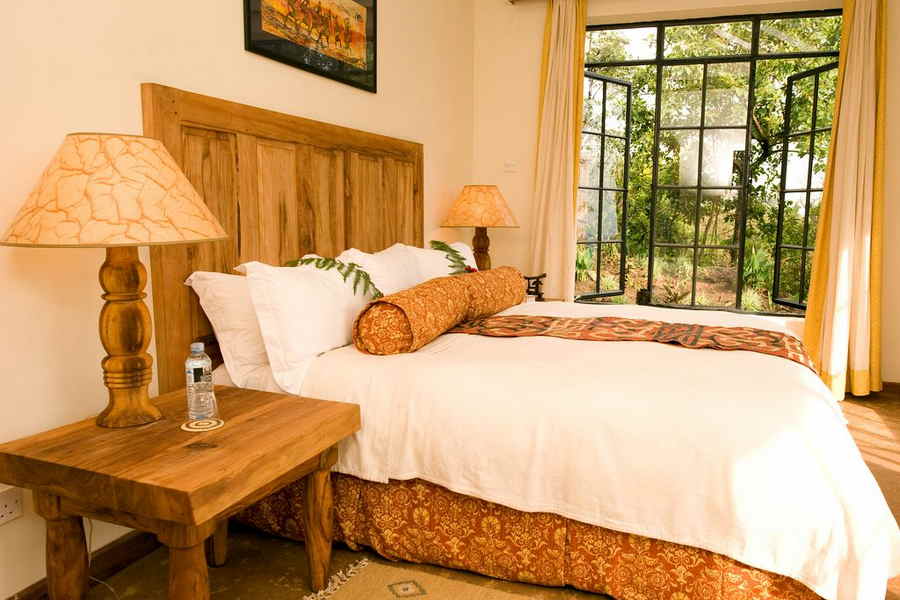 Im Hauptgebäude sorgen sechs offene Kamine für eine warme, gemütliche Atmosphäre – perfekt zum Entspannen nach einem anstrengenden Gorilla-Trekking. Gästen stehen ein Restaurant, eine Bar, eine Lounge, die Rezeption sowie ein kleiner Souvenir- und Geschenkeshop zur Verfügung. Die großzügige Terrasse eröffnet beeindruckende Panoramablicke bis zum Nyiragongo-Krater.