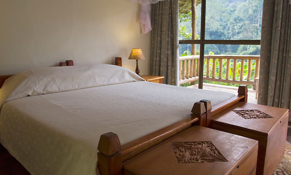 Die Engagi Lodge liegt inmitten eines großen, zusammenhängenden Waldgebietes direkt angrenzend an den Bwindi Impenetrable Forest Nationalpark und bietet beeindruckende Ausblicke über das dichte Blätterdach bis hinunter zum Munyanga River. Durch ihre Lage nahe der Straße zum Parkhauptquartier ist sie ein idealer Ausgangspunkt für Gorilla-Trekking im Buhoma-Sektor.