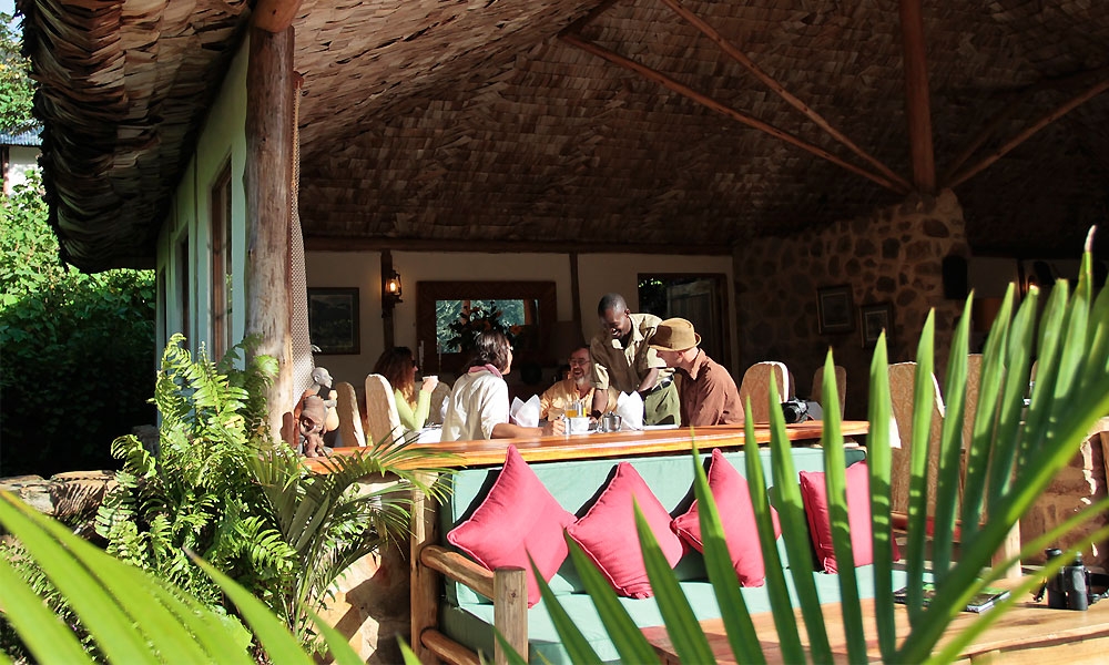 Das Hauptgebäude ist offen gestaltet und beherbergt eine Bar mit Sitzbereich, den Speiseraum sowie eine großzügige Außenveranda mit Aussichtspunkt. Trotz der Möglichkeit, größere Gruppen aufzunehmen, bietet die Lodge viele Rückzugsbereiche für Privatsphäre. Die Küche ist separat untergebracht und serviert frisch zubereitete Drei-Gänge-Menüs, wobei auch vegetarische Wünsche berücksichtigt werden.