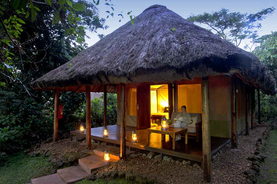 Die Gorilla Forest Lodge ist ein elegantes, ökologisch bewusstes Luxus-Refugium im Bwindi Impenetrable Forest National Park und gilt als eine der bestgelegenen Unterkünfte für Gorilla-Trekking in Uganda. Spektakulär an einem bewaldeten Berghang gelegen, eröffnet die Lodge eindrucksvolle Blicke über das dichte Blätterdach des Regenwaldes – besonders magisch bei Sonnenaufgang, wenn Nebel zwischen den Bäumen aufsteigt und der Wald erwacht.