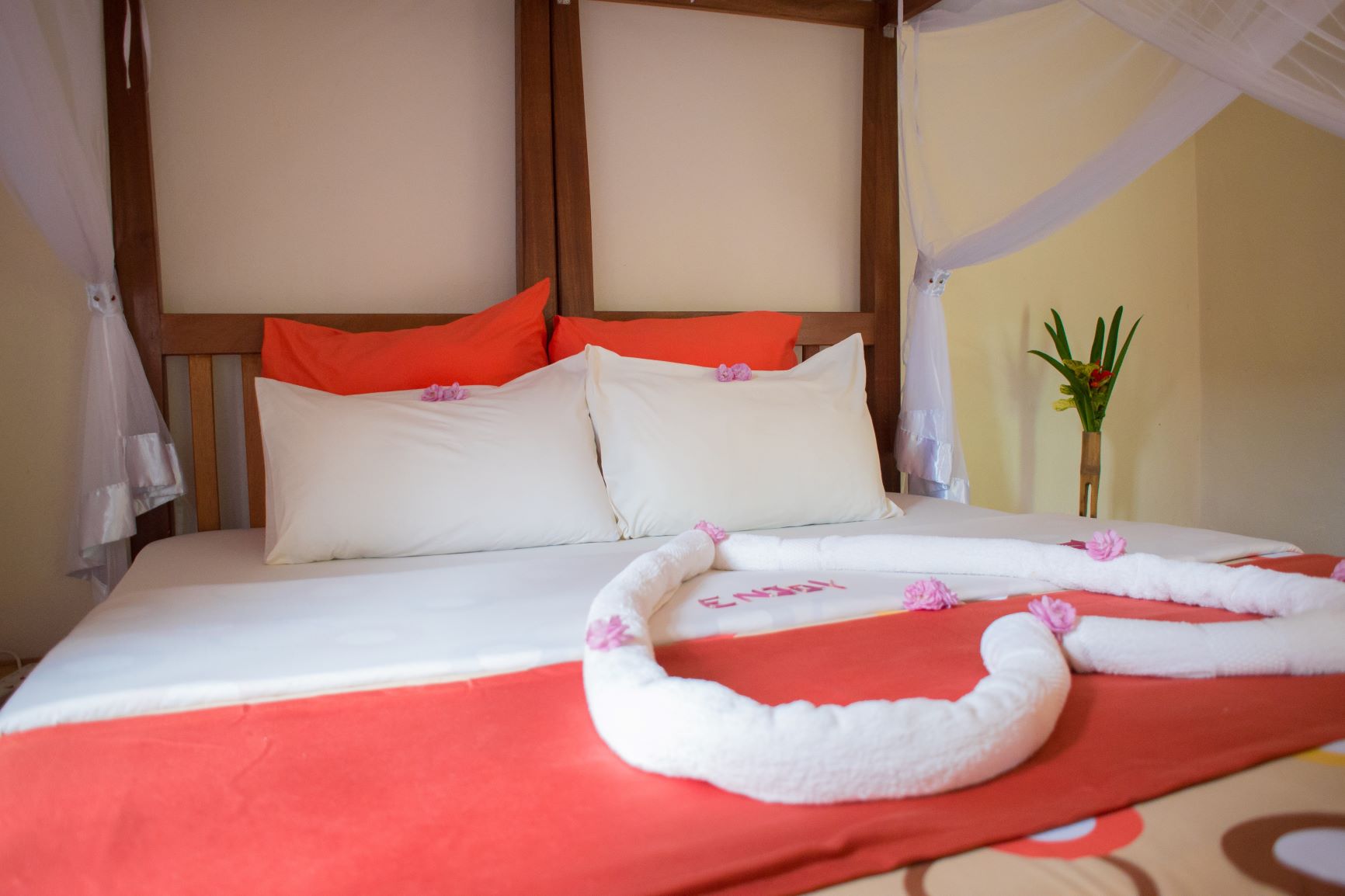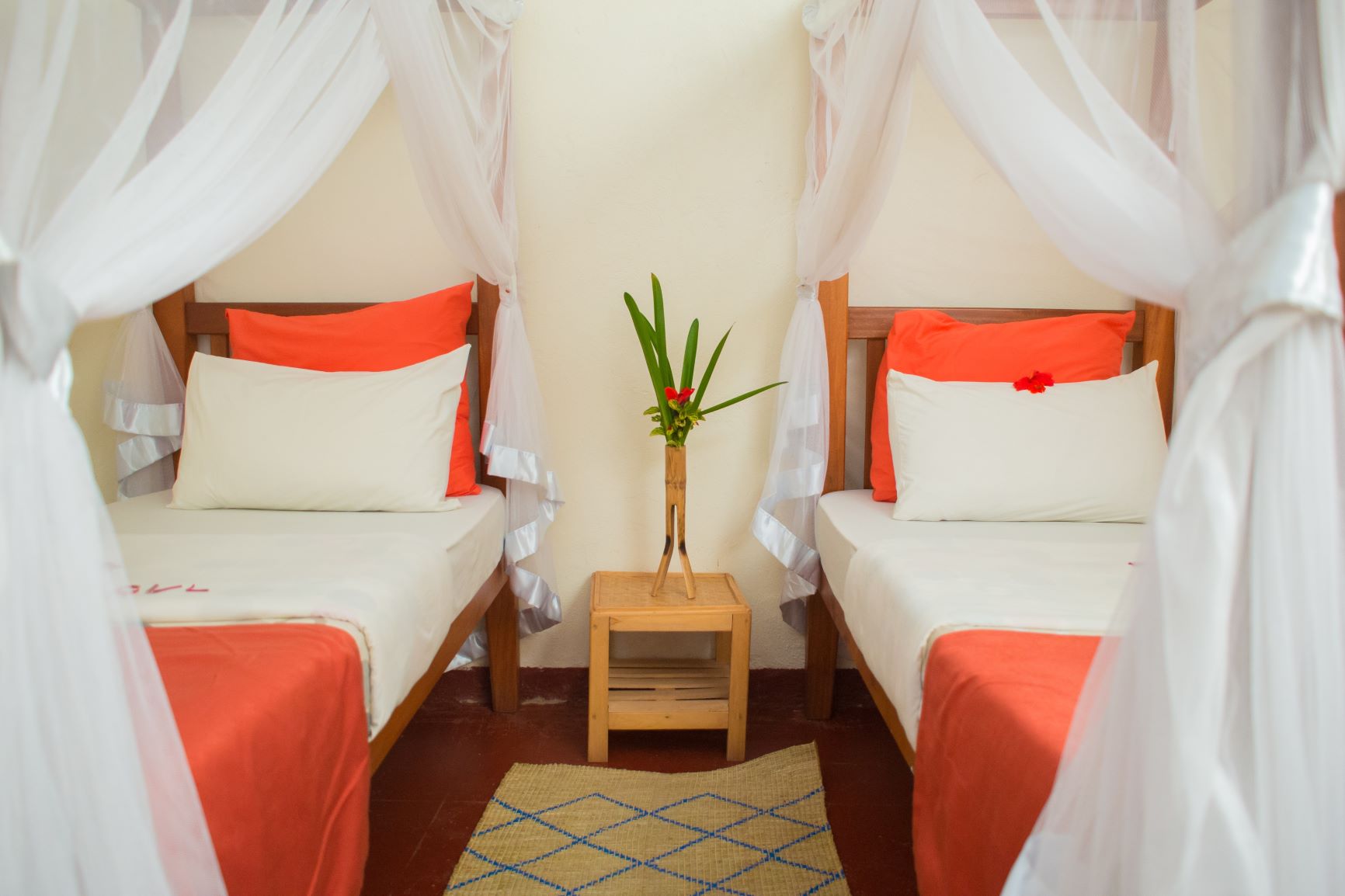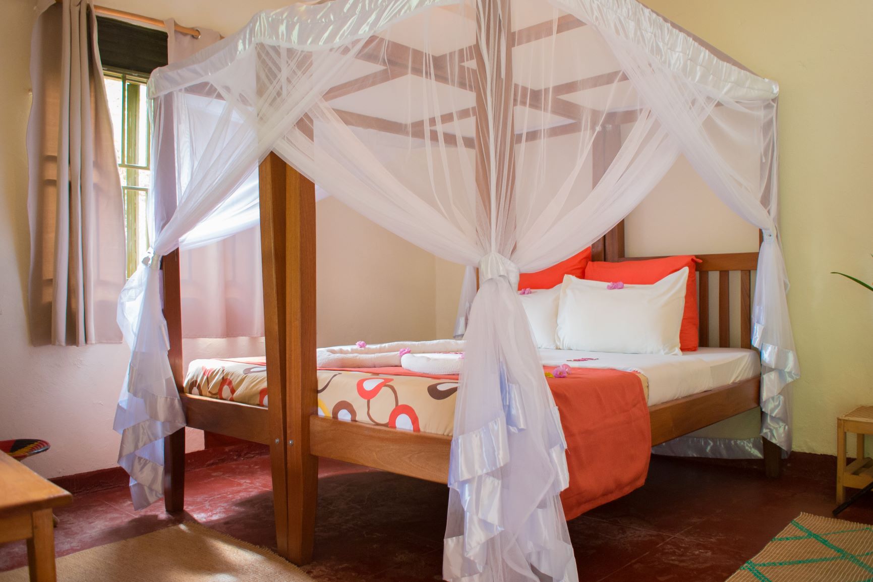 Alle Zimmer bieten Betten mit Moskitonetzen, ein eigenes Badezimmer mit Dusche und Toilette sowie eine kleine private Veranda mit Blick in die Natur. Die Zimmer sind funktional gehalten und eignen sich für Einzelreisende, Paare oder Twin-Belegung.