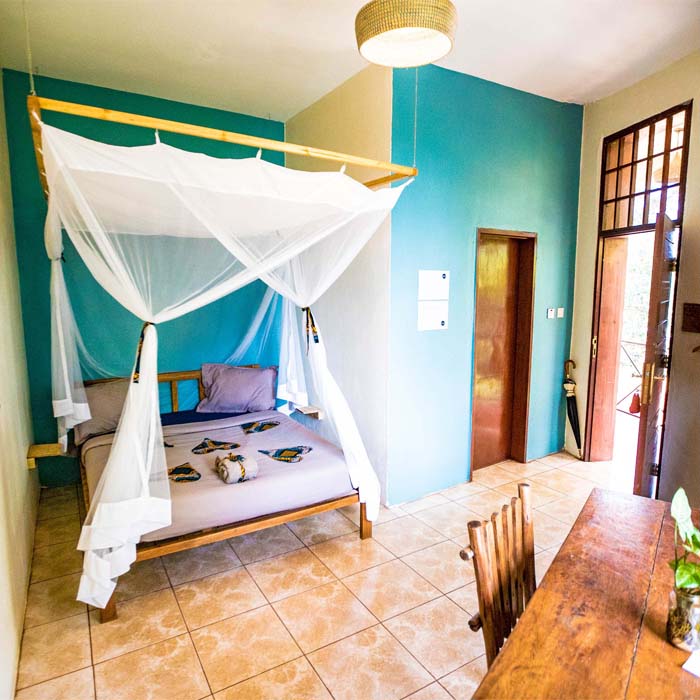 ViaVia Entebbe bietet eine breite Auswahl an Unterkünften für unterschiedliche Budgets und Reiseformen. Zur Verfügung stehen Zimmer im Hauptgebäude, Backyard-, Garden- und Pond-View-Rooms mit eigenem Bad, Terrasse oder Veranda sowie verschiedenen Belegungsmöglichkeiten von Einzel- bis Familienzimmern. Ergänzt wird das Angebot durch stilvolle Glamping-Zelte mit echten Betten, Strom, WLAN und gemeinschaftlichen Bambusduschen. Für preisbewusste Reisende gibt es zudem ein Dormitory mit Etagenbetten sowie einen Campingbereich mit mehreren Stellplätzen.