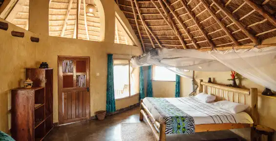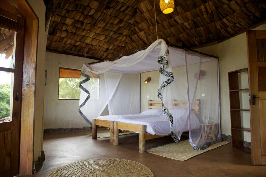 Die Unterkünfte der Rwakobo Rock Lodge liegen verteilt auf einem massiven Granitfelsen direkt am Lake Mburo Nationalpark und fügen sich dank natürlicher Materialien harmonisch in die Landschaft ein. Die strohgedeckten Cottages bieten viel Privatsphäre und verfügen über Solarbeleuchtung, Spültoilette, solar beheizte Dusche sowie eine private Veranda zum Entspannen in der Natur. Ergänzt werden sie durch self-contained Zimmer im Hornbill House, einem Reetdachgebäude mit fünf Schlafzimmern, jeweils mit en-suite Badezimmer und eigener Veranda.