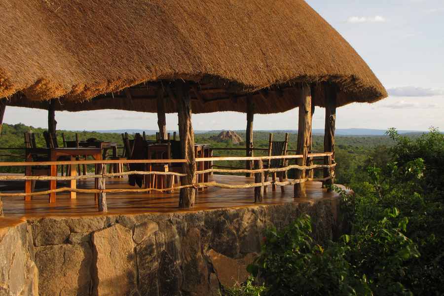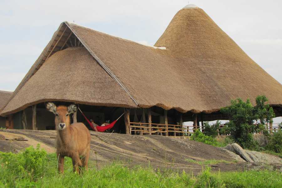Die Rwakobo Rock Lodge liegt idyllisch am Rand des Lake Mburo Nationalparks, nur wenige Fahrminuten vom Parkeingang entfernt. Das zentrale Lodge-Gebäude befindet sich erhöht auf einem felsigen Hügel und eröffnet weite Blicke in die Savannenlandschaft des Nationalparks. Häufig bewegen sich Zebras, Warzenschweine, Impalas oder Buschböcke frei rund um die Lodge und sorgen für authentische Safari-Momente direkt vor der Haustür.