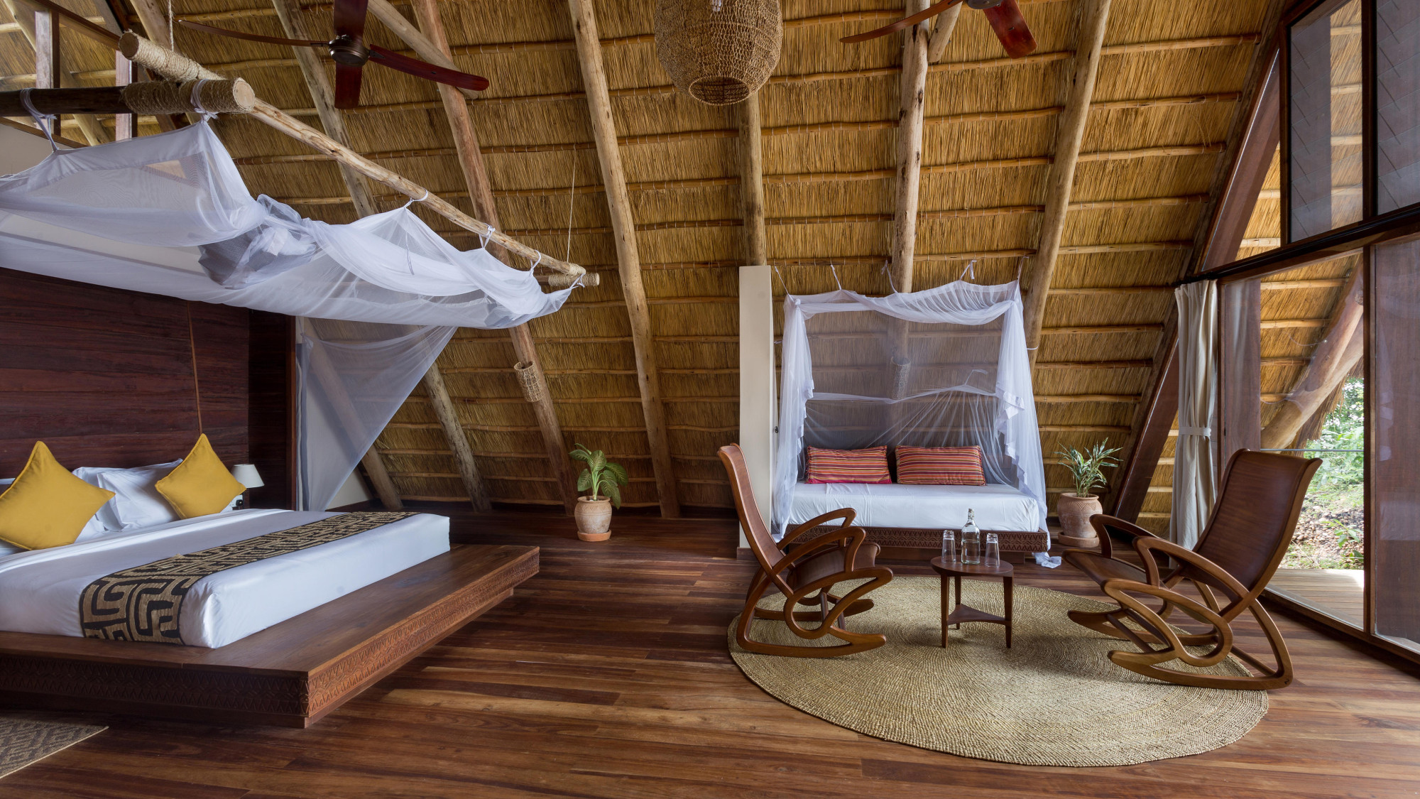 Die sechs Deluxe Bandas sind geschmackvoll eingerichtete, freistehende Gästeunterkünfte mit privatem Badezimmer, komfortablen Betten, Moskitonetzen und modernen Annehmlichkeiten. Sie verfügen über eine eigene Terrasse mit Blick auf den Nil, WLAN, Mini-Bar/Fridge und sind perfekt für Paare oder Einzelreisende, die eine stilvolle, naturnahe Unterkunft suchen. Jede Deluxe Banda bietet zudem eine Atmosphäre aus afrikanischem Stil kombiniert mit Komfort und Privatsphäre.