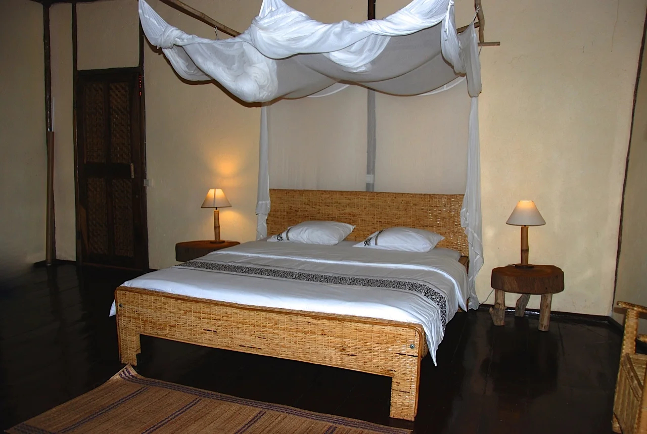 Diese charmanten, reetgedeckten Cottages verfügen jeweils über ein privates en-suite Badezimmer mit Warm- und Kaltwasser sowie Outdoor-Dusche. Vier Cottages liegen eingebettet in üppiger Vegetation und sind über erhöhte Holzstege erreichbar, drei weitere blicken auf offenes Grasland, das regelmäßig von Wildtieren besucht wird. Alle Cottages bieten eine großzügige Veranda mit Sitzgelegenheiten.