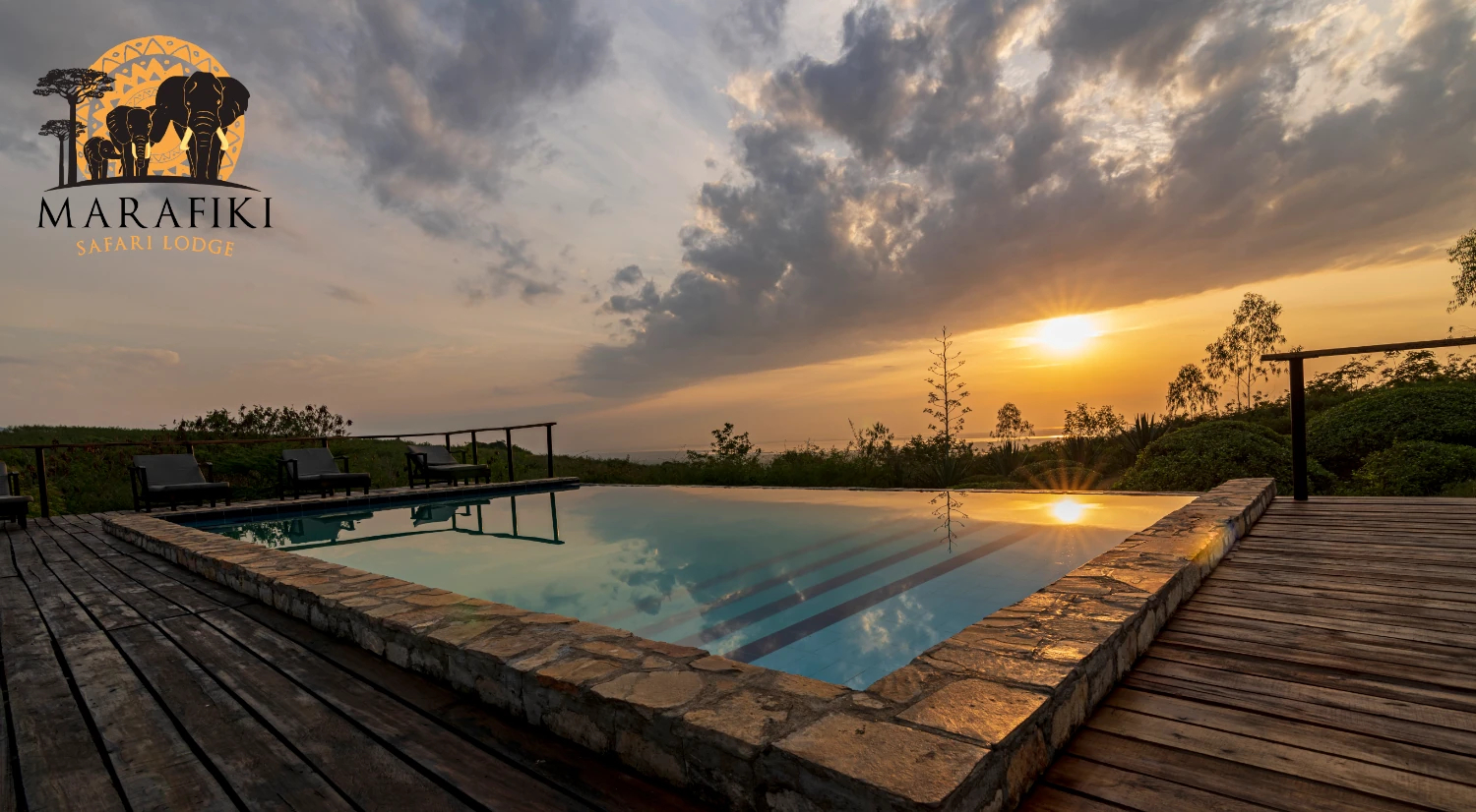 Die Marafiki Safari Lodge liegt malerisch im Westen des Queen Elizabeth Nationalparks und bietet unvergleichliche Blicke über den Lake George und die weite Savanne des Nationalparks. Die Lodge wurde in traditioneller, handwerklicher Bauweise mit umweltfreundlichen Materialien gestaltet und integriert sich harmonisch in die Landschaft, wodurch Gäste ein intensives Natur- und Safari-Erlebnis genießen können.