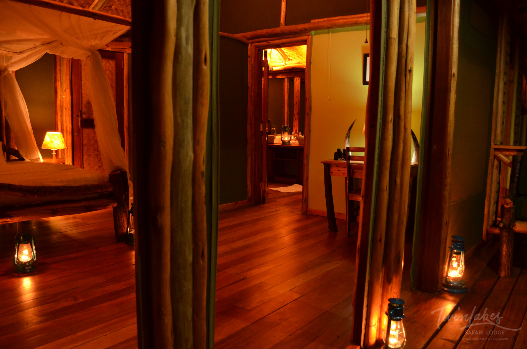 Die 9 Cottages sind stilvoll gestaltet und bieten jeweils eine private, schattige Veranda mit weitem Blick über den Nationalpark und die Seenlandschaft. Alle Unterkünfte verfügen über ein en-suite Badezimmer mit Spültoilette, heißer Dusche und geräumiger Badewanne.