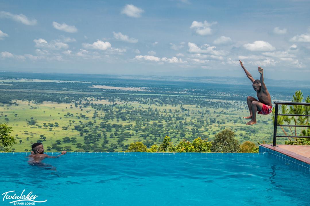 Die Twin Lakes Safari Lodge liegt spektakulär am Rand der Steilwand (Escarpment) direkt neben dem Queen Elizabeth Nationalpark und zählt dank ihrer erhöhten Lage zu den Lodges mit den eindrucksvollsten Panoramablicken der Region. Von der Lodge aus eröffnen sich weite Ausblicke über den Kazinga-Kanal, die Seen George und Edward sowie bis zu den Rwenzori-Bergen.